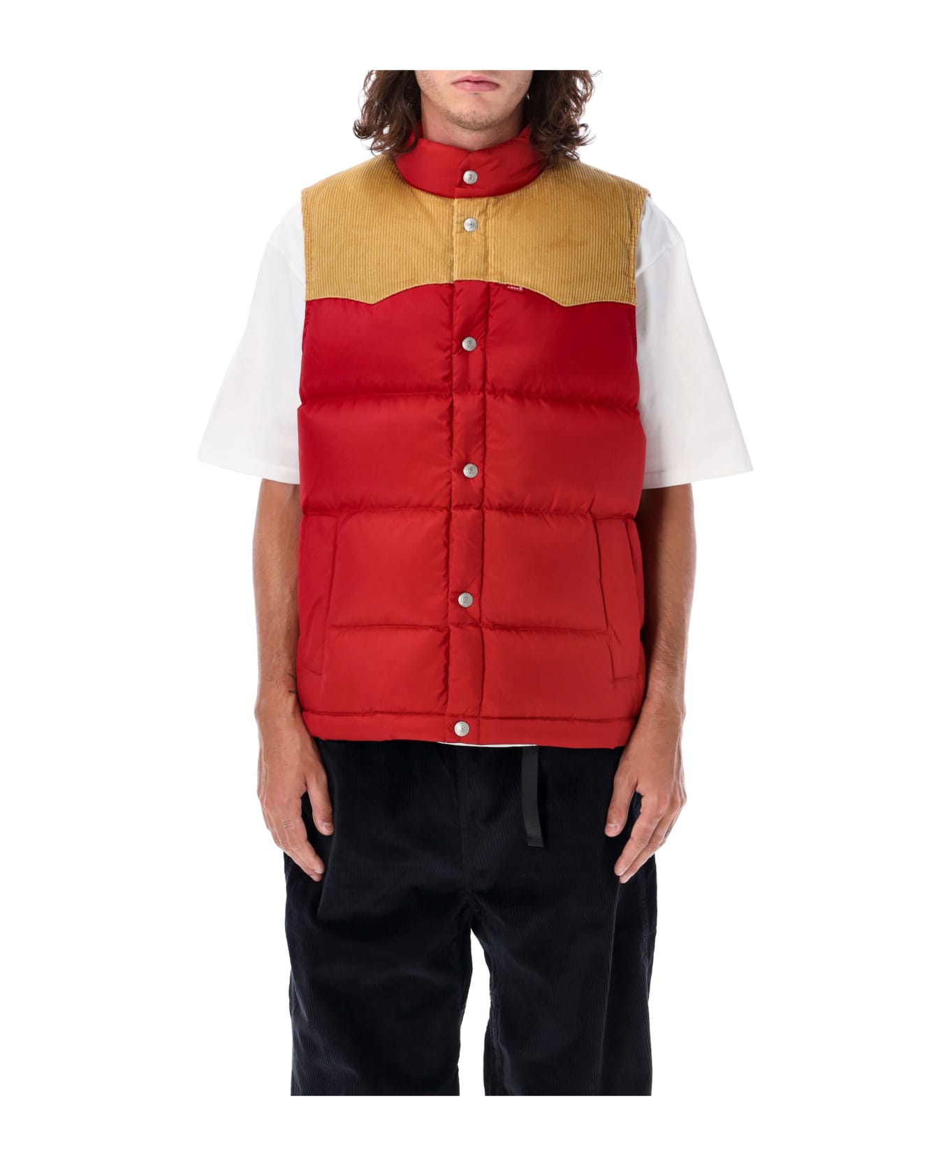 Puffer Vest By Levi's. Featuring: High Neck Sleeveless Snap Button Closure At Front Lateral Pockets Logo Label At Chest Contrasting Ribbed Fabric Panel At Shoulders Inner Zip Pocket Insulated Fabric Stitching Details Padded Model Is 1,90 M Tall And He Is Wearing Size L