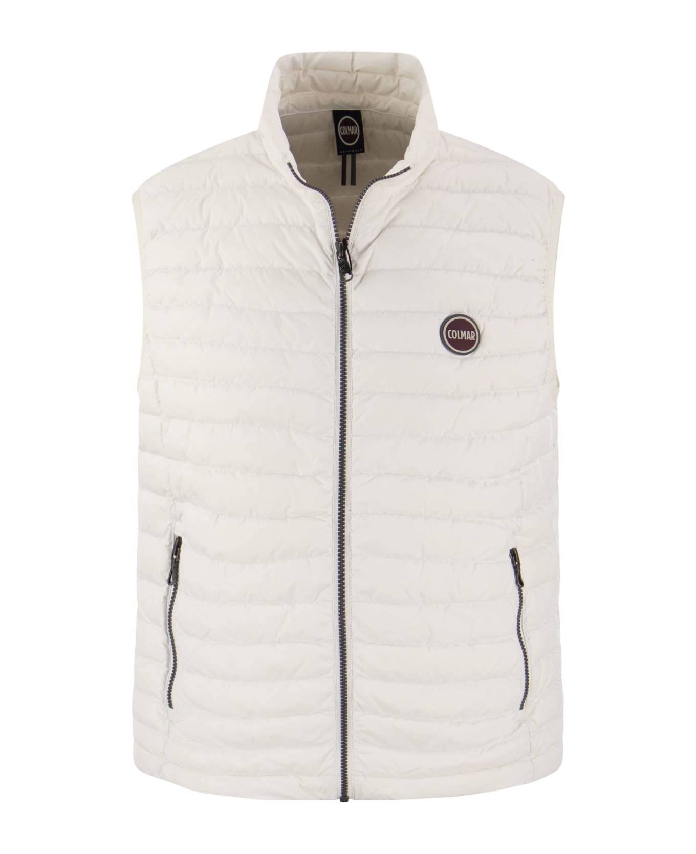 Men's down waistcoat, made of opaque, ultra-light, recycled fabric. Padded with lightweight natural down, it is an iconic Colmar Originals garment. - Zip closure - Side pockets and inside zip pocket - Lightweight natural down filling - Water repellent treatment - Colmar Originals logo applied to the chest DESIGNER ID: 1278R 8VX 01