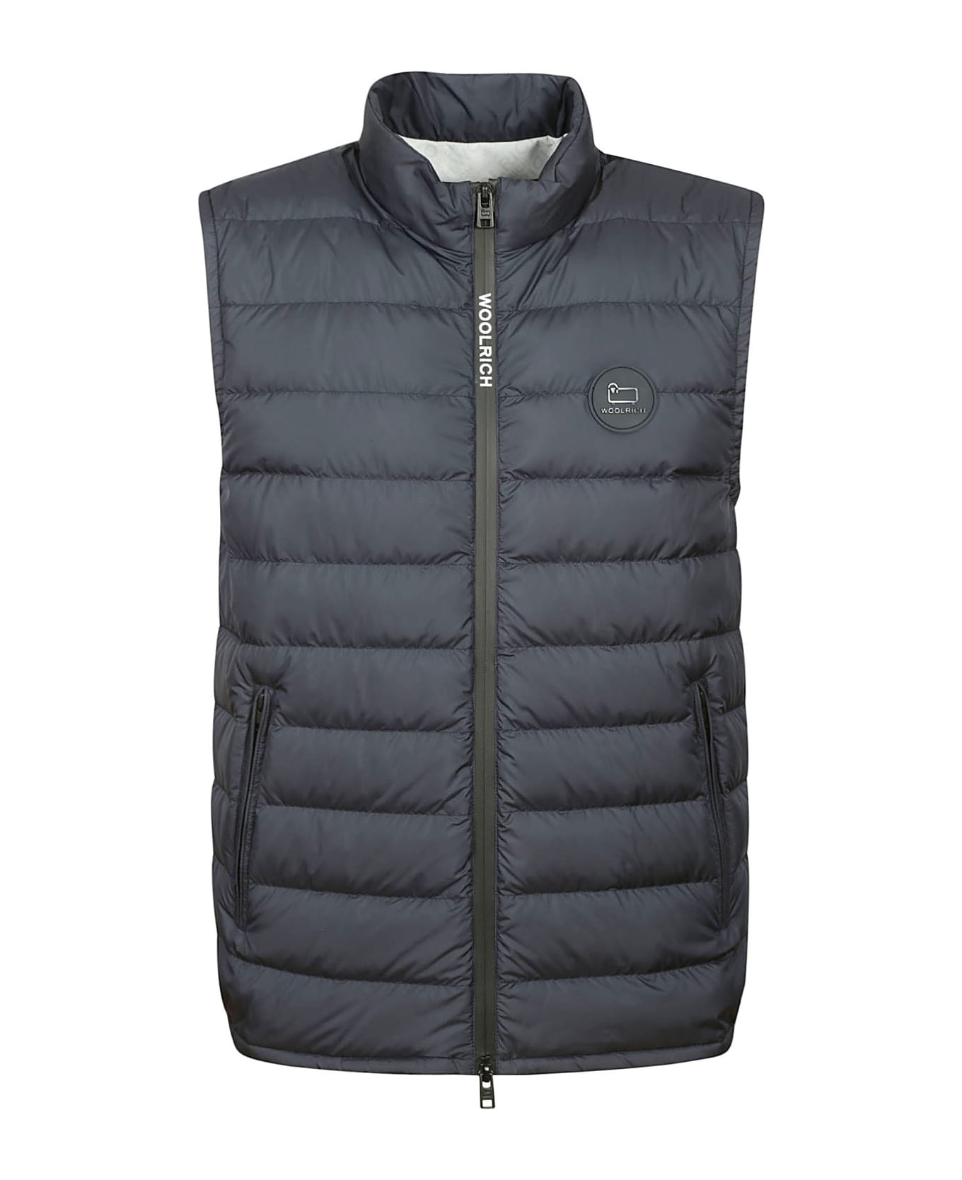 Woolrich Sleeveless in blue technical fabric, quilted workmanship, side pockets with zip, closure with heat-sealed zip, logo insert.