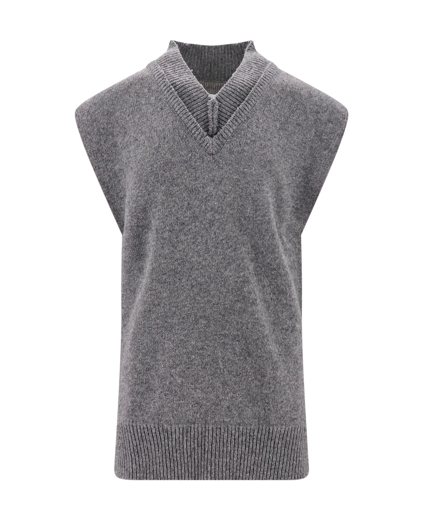 Wool, linen and cotton vest. The peculiarity of this garment is given by fabric raw cutted that tends to ladder