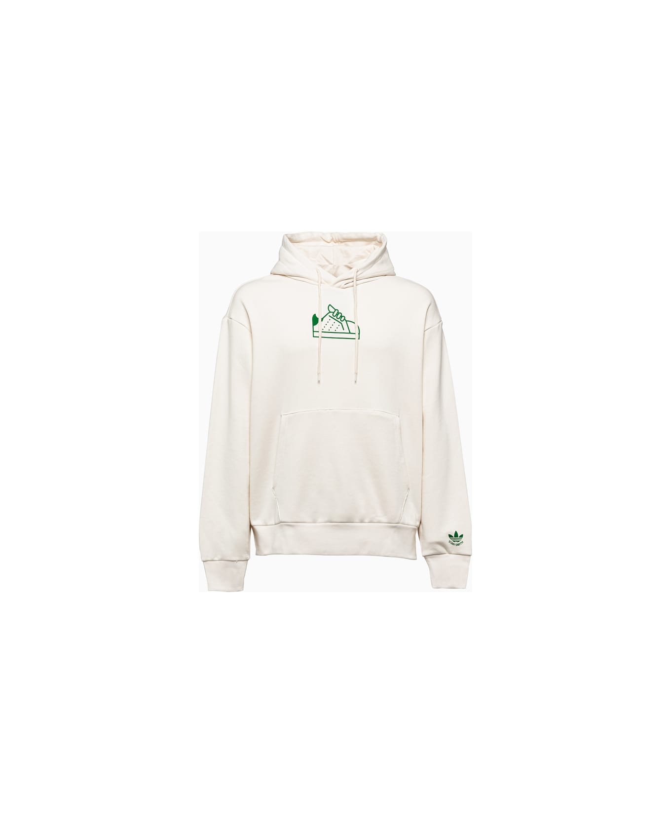 solid color organic cotton sweatshirt. color matched adjustable hood with drawstring. contrast stan smith print at front. pouch pocket. shamrock logo and stan smith lettering print at one sleeve. ribbed knit cuffs and hem. cotton fleece lining. regular fit. composition: 100% organic cotton.