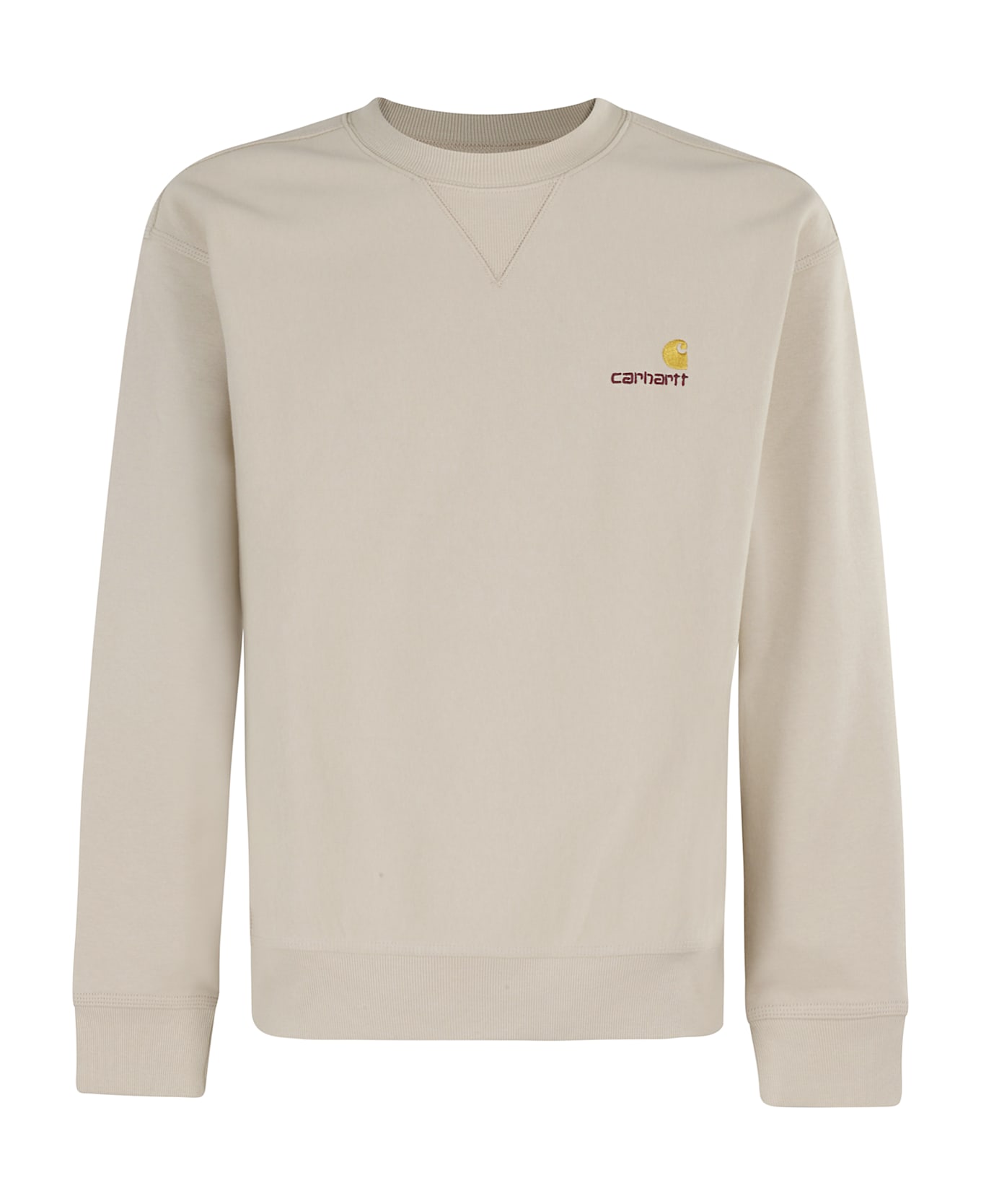 American Script sweatshirt - Carharrt Wip - beige color - crew neck - long sleeves - ribbed trim - embroidered logo - relaxed fit