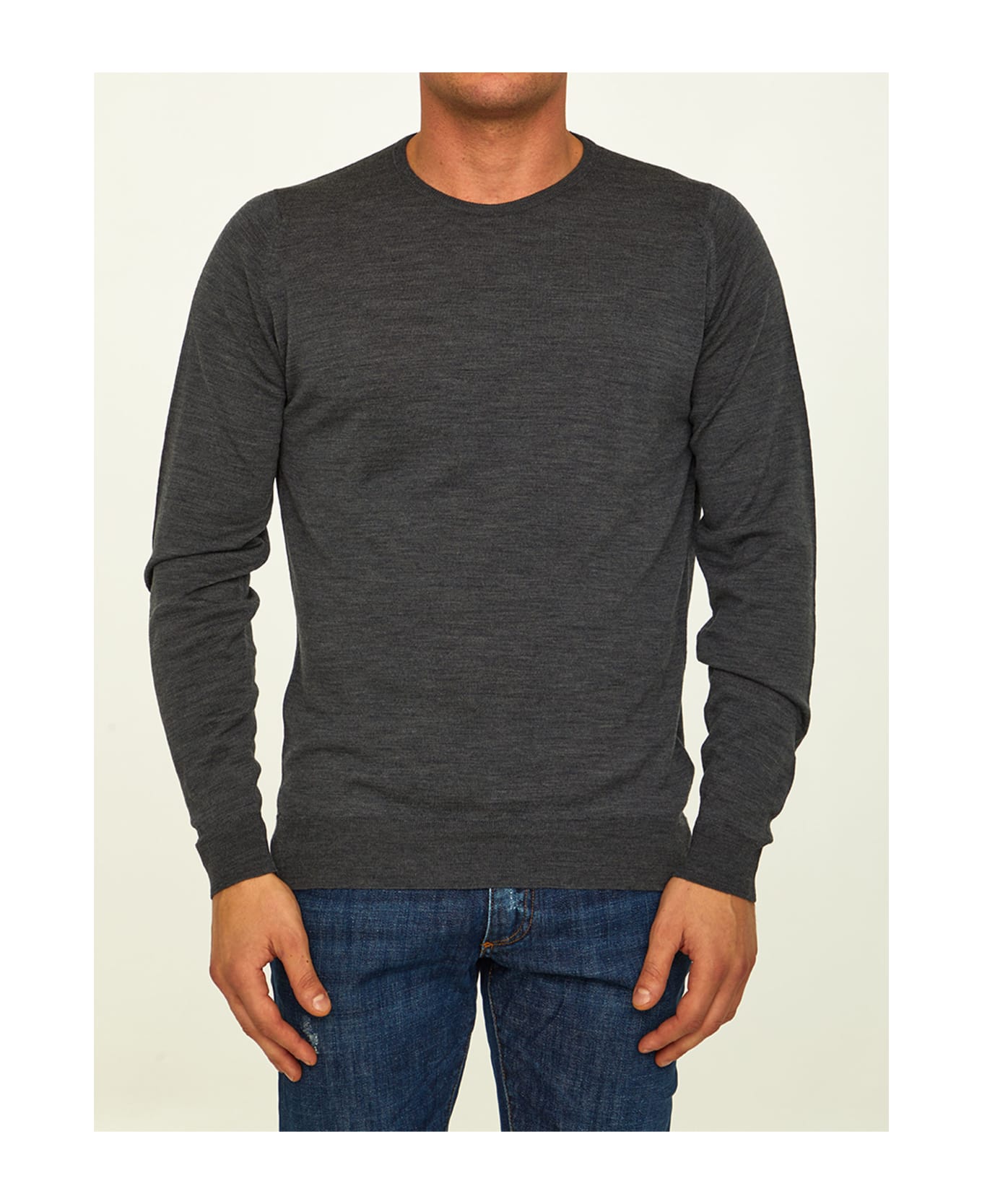 Long-sleeved crewneck jumper in anthracite merino wool. Ribbed neck. Regular fit.