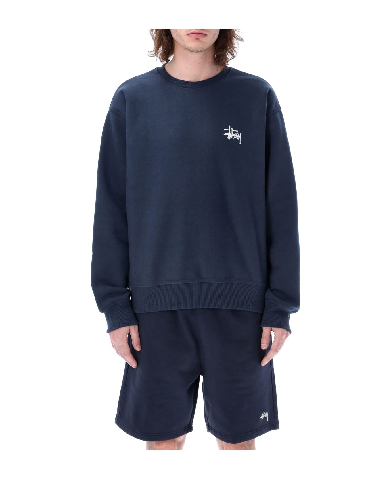 Cotton Blend Basic Logo Crewneck By Stüssy. Featuring: Ribbed Crew Neck Long Sleeves Dropped Shoulders Logo Print At Chest Large Logo Print At Back Rib Trims The Model Is 1,90 M Tall And He's Wearing Size L