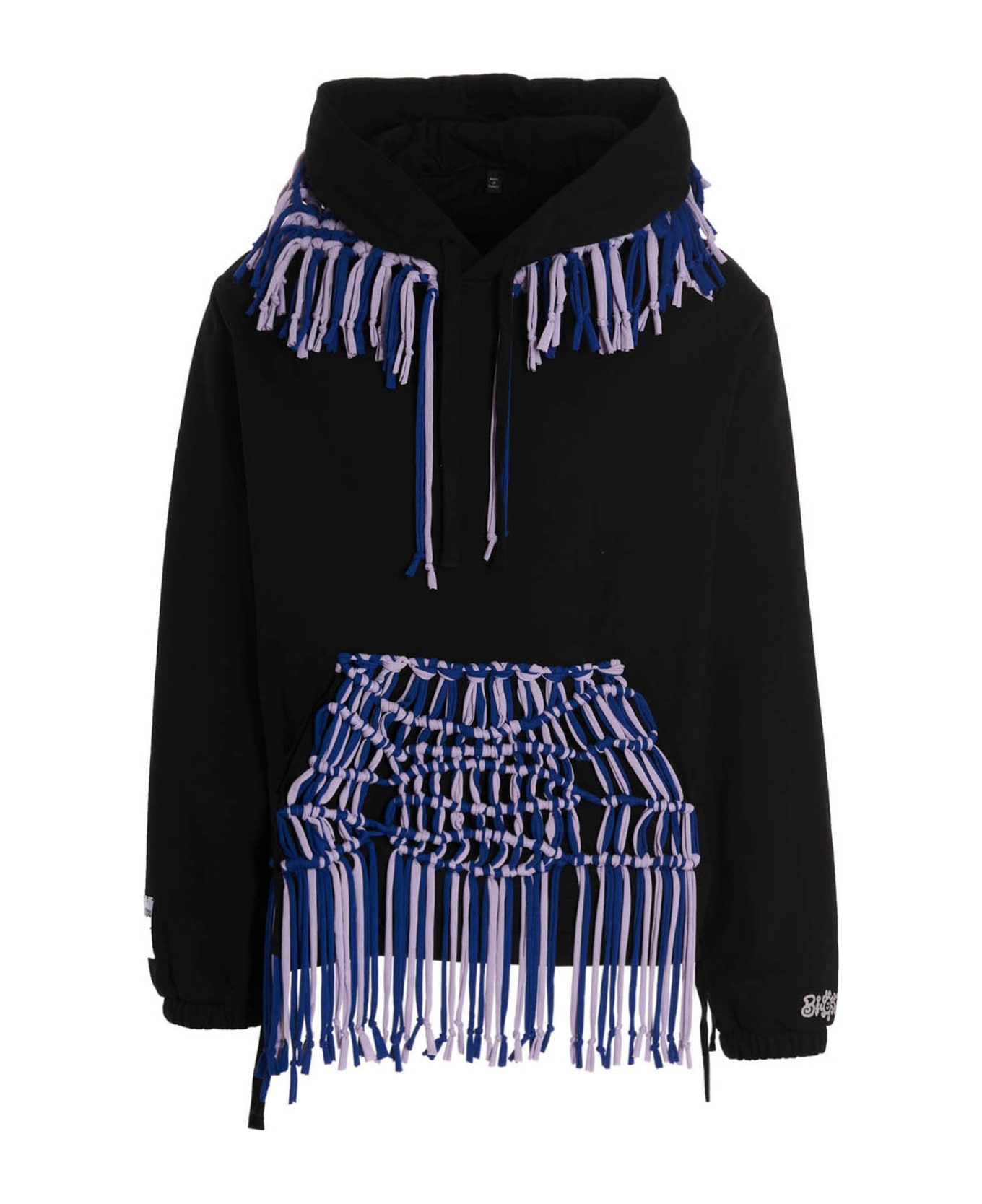 Biosis 'Macrame' cotton hoodie with fringed details, kangaroo pocket and long cuffed sleeves.