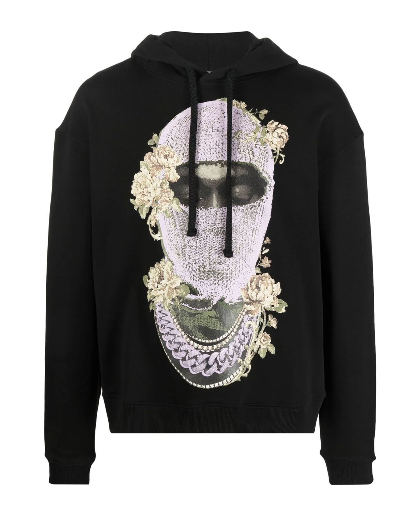 Black cotton hoodie featuring front print, long sleeves, classic hood, ribbed trims, print ot the rear Composition: Cotton, 100%