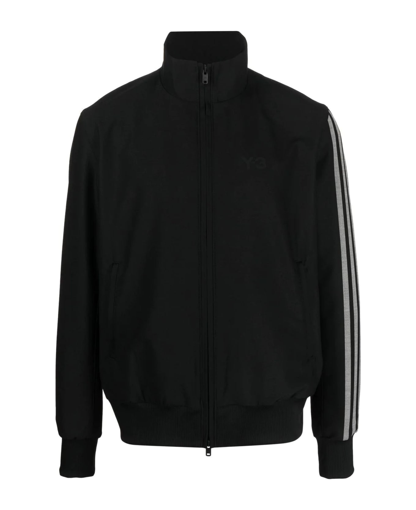 Black wool blend track jacket, signature 3-Stripes logo, funnel neck, front zip fastening, long sleeves Composition: Wool, 57% , Recycled Polyester, 38% , Elastane, 5%