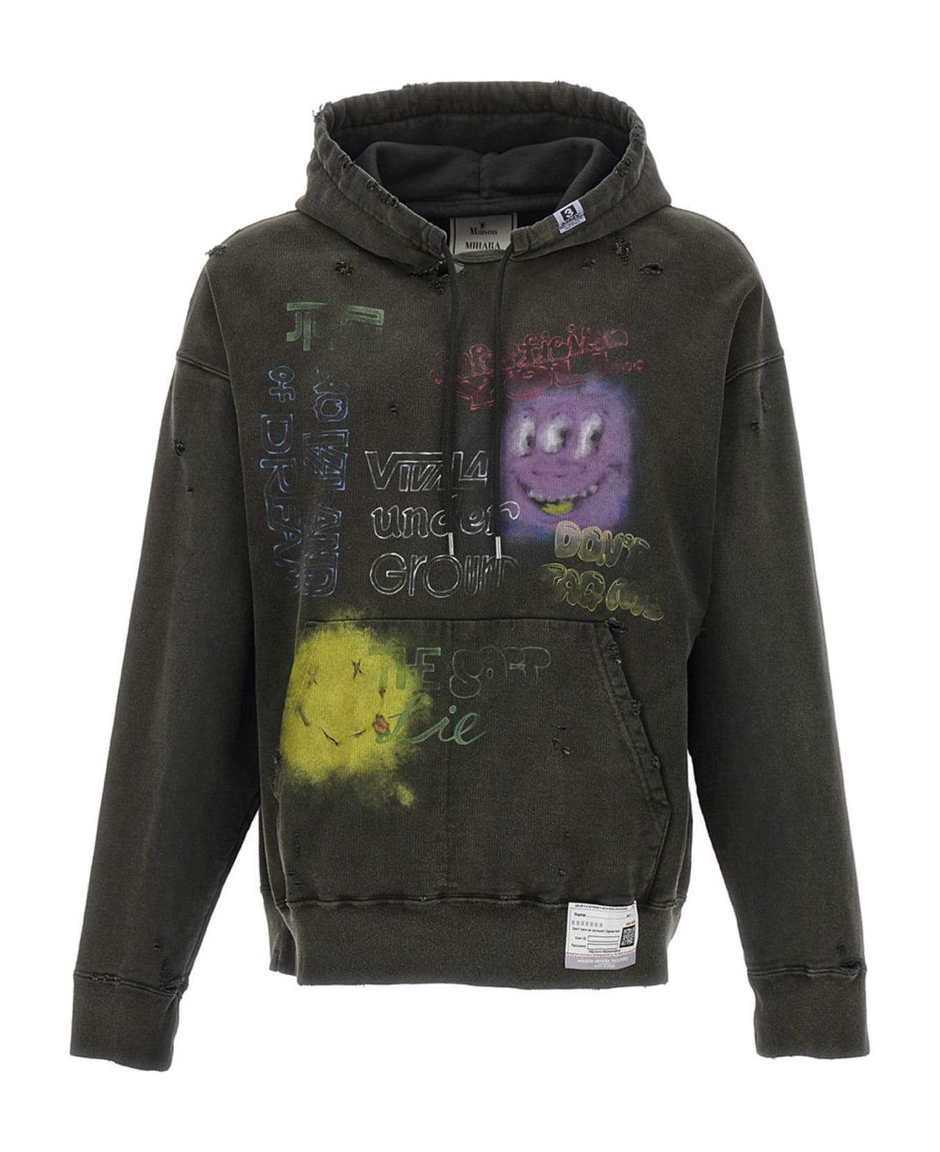 Bleached' cotton hoodie with all-over used effect details, front and back print, kangaroo pocket, and long cuffed sleeves.