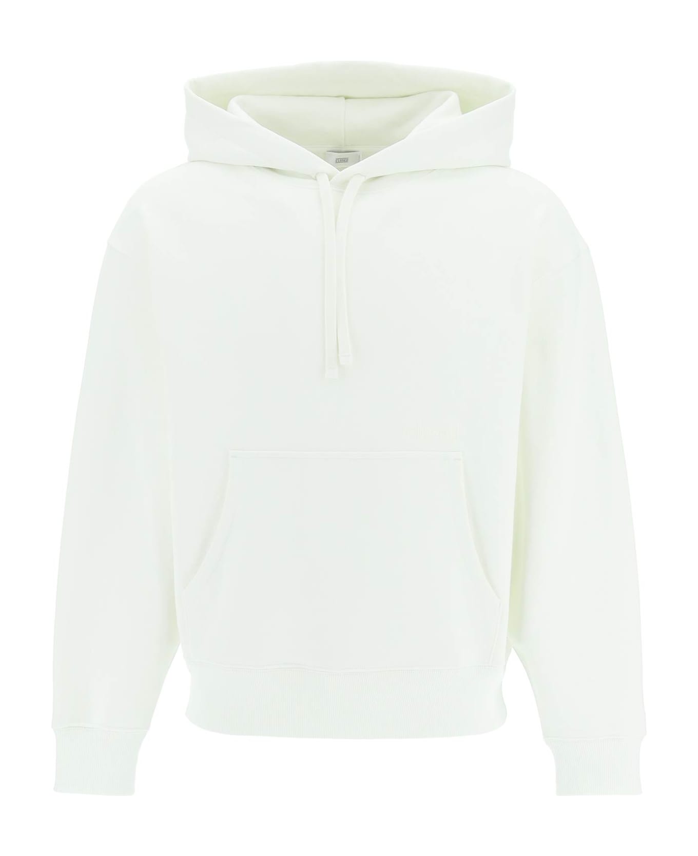 Organic cotton jersey hoodie by Closed featuring ribbed trims, kangaroo pocket, elastic drawstring, tone on tone embroidered logo detail at front. Boxy fit. The model is 187 cm tall and wears a size L.