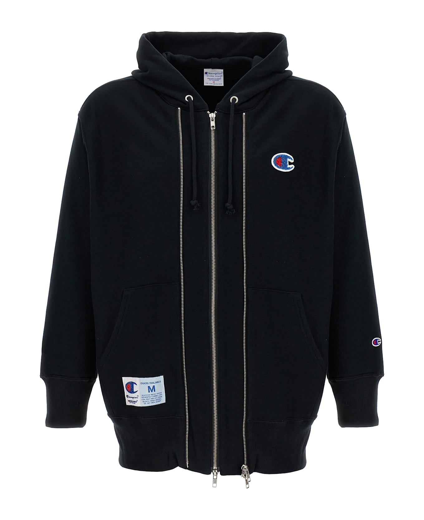 Champion x Undercover hoodie in brushed cotton, front beaded logo patch, adjustable zip closure, long cuffed sleeves.