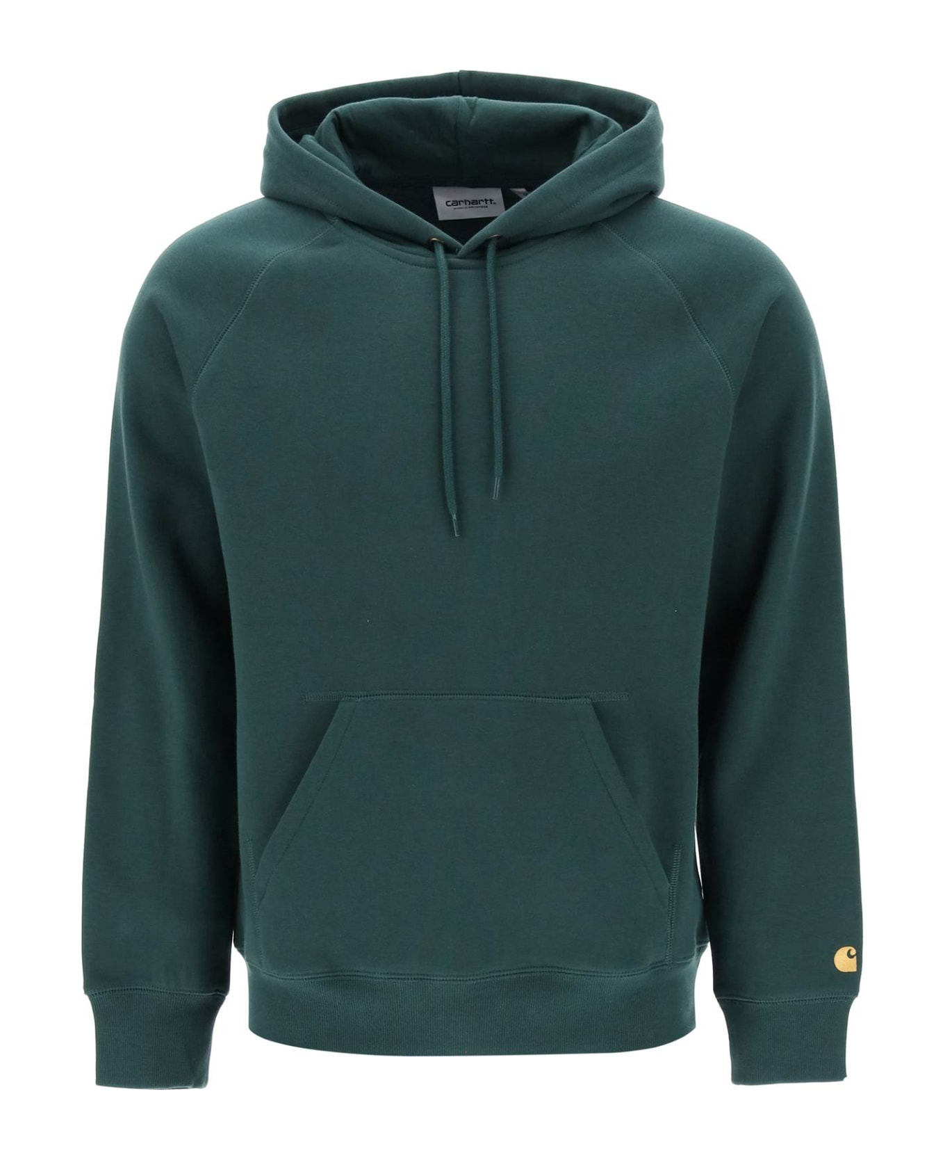 cotton-blend jersey hoodie by Carhartt-WIP with brushed interior. It features raglan sleeves, kangaroo pocket, ribbed hems, adjustable drawstring. Finished with contrasting embroidered logo detail on the left sleeve and flatlock stitching. Relaxed fit. The model is 187 cm tall and wears a size M.
