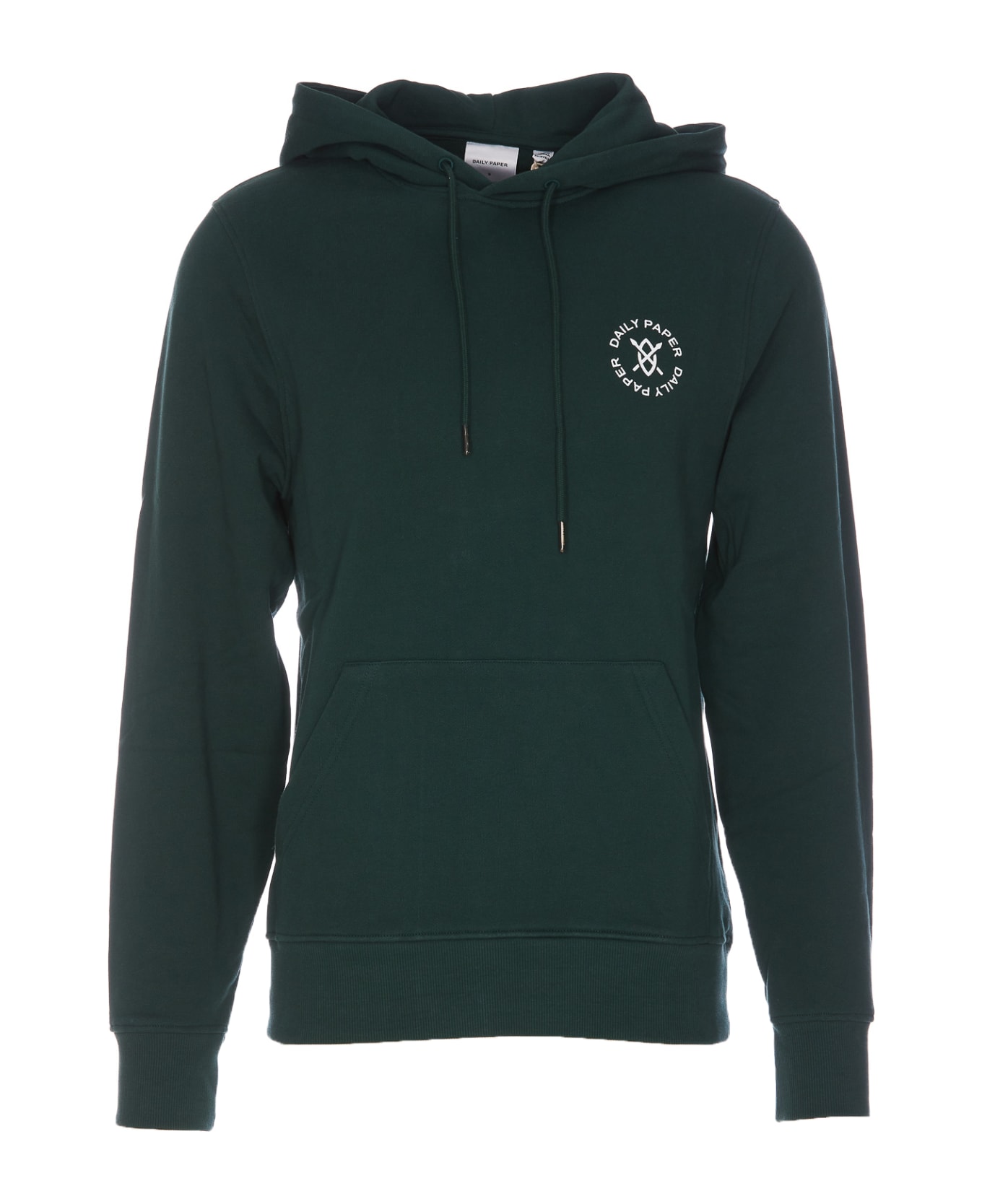 Daily Paper pine green Circle hoodie, hood with coulisse, frontal print logo,kangaroo pocket, elasticized cuffs