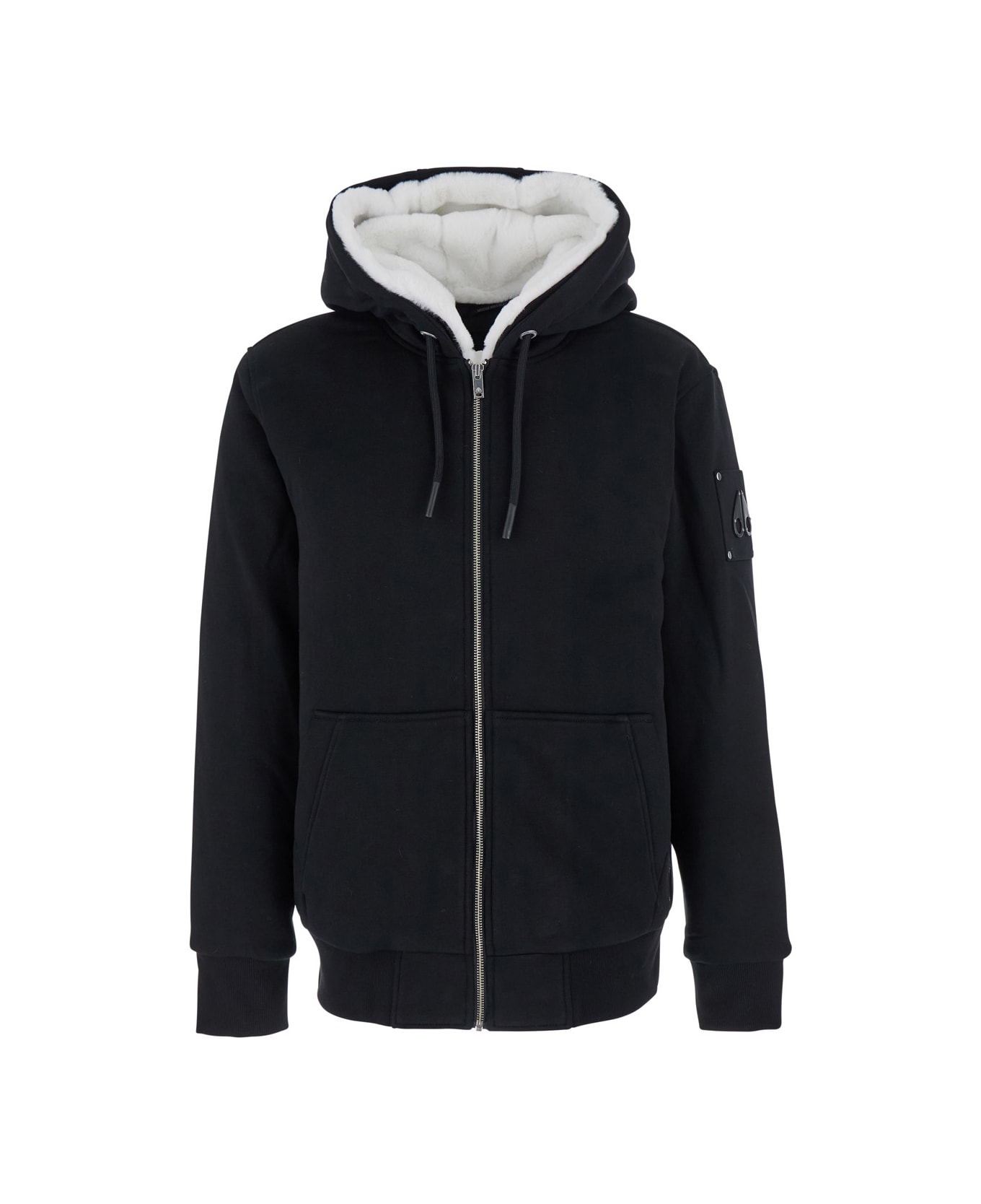 Sweatshirt Black Drawstring hood Long sleeves Front zip closure Two front pockets Logo patch on the sleeve Ribbed trims Straight hem Cotton blend Regular fit