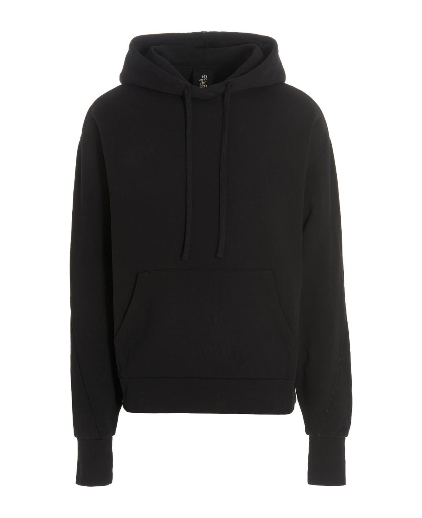 Cotton hoodie with contrast stitching, kangaroo pocket, long cuffed sleeves.