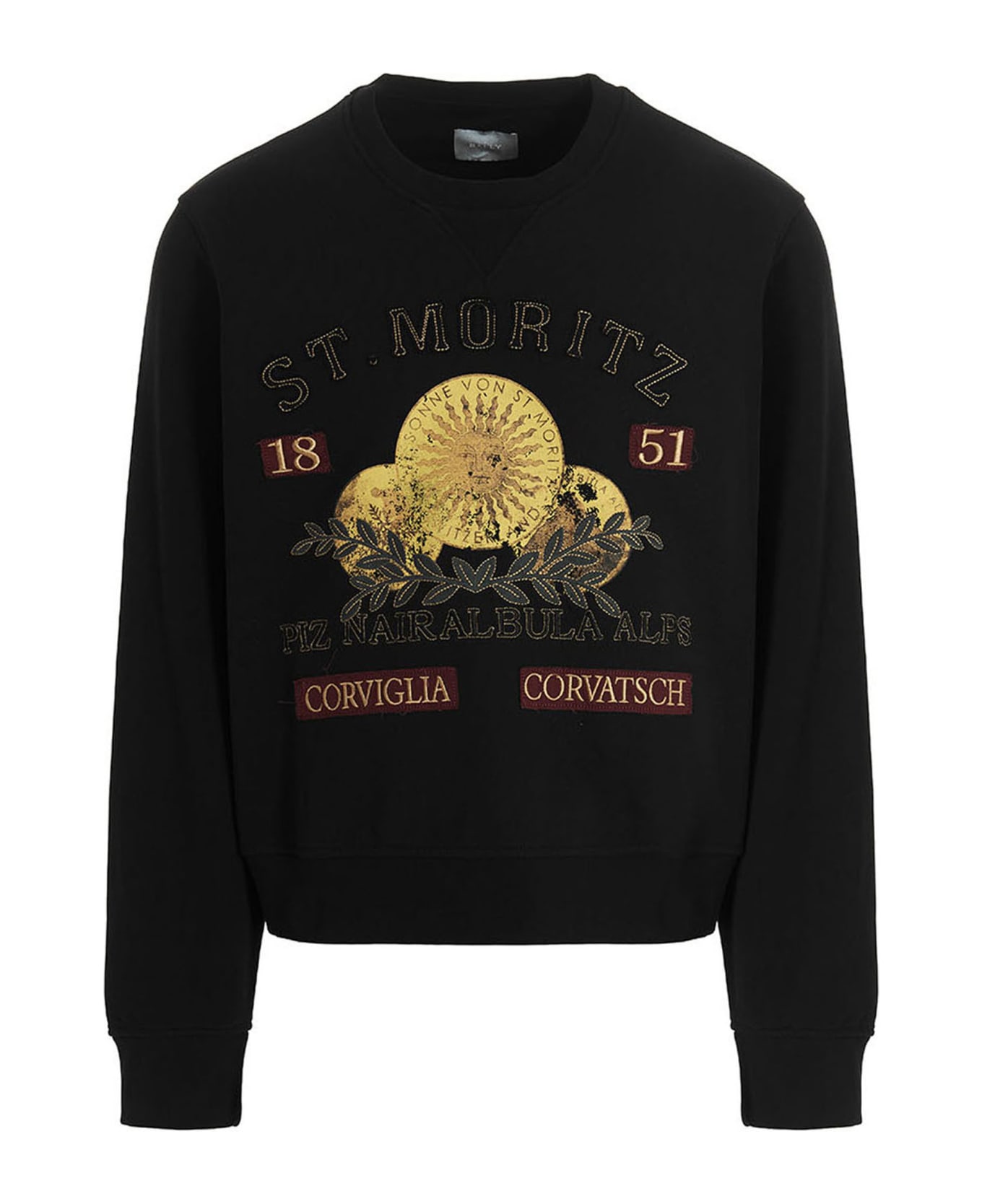 Curling capsule St. Moritz' cotton sweatshirt with front embroidery and print, a leather logo patch at the back, a crewneck and long cuffed sleeves.