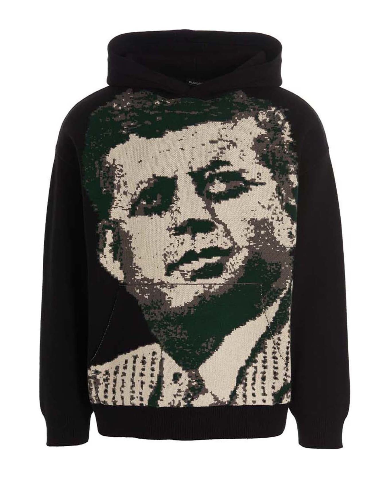 Delivered Jacquard' cotton knit hoodie with jacquard pattern, kangaroo pocket, and long cuffed sleeves.
