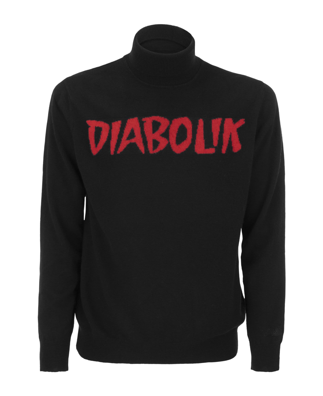Black turtleneck jumper with contrasting colour Diabolik embroidery. Cashmere blend for an even softer effect. - Regular fit - Long sleeves - Ribbed collar and cuffs DESIGNER ID: DOLC001 00185C Composition: 20% Cashmere, 35% Wool, 30% Viscose, 15% Polyamide