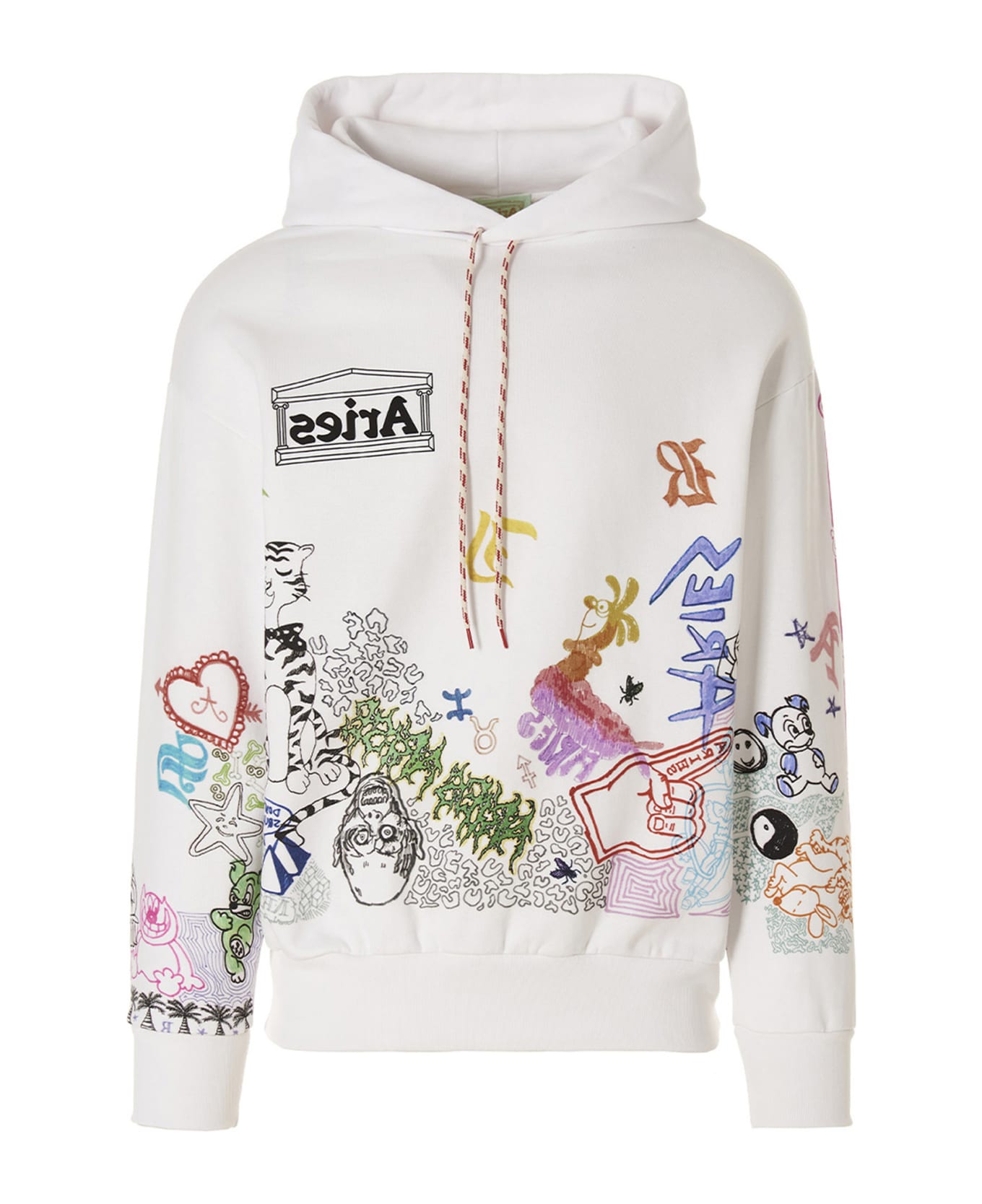Doodle' cotton hoodie with all-over print, long cuffed sleeves and a front logo print.