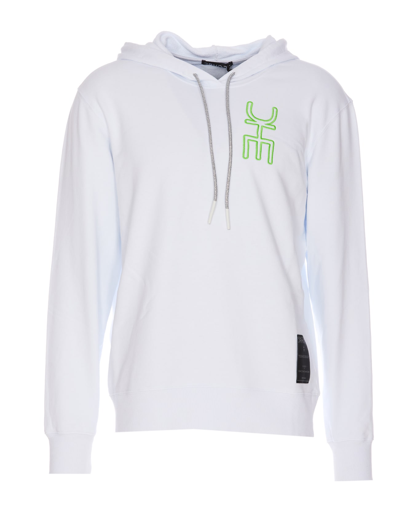 Drhope white hoodie, embroidered logo on the front, hood with coulisse, elasticized on cuffs, patch detail on the front Composition: 100% Cotton