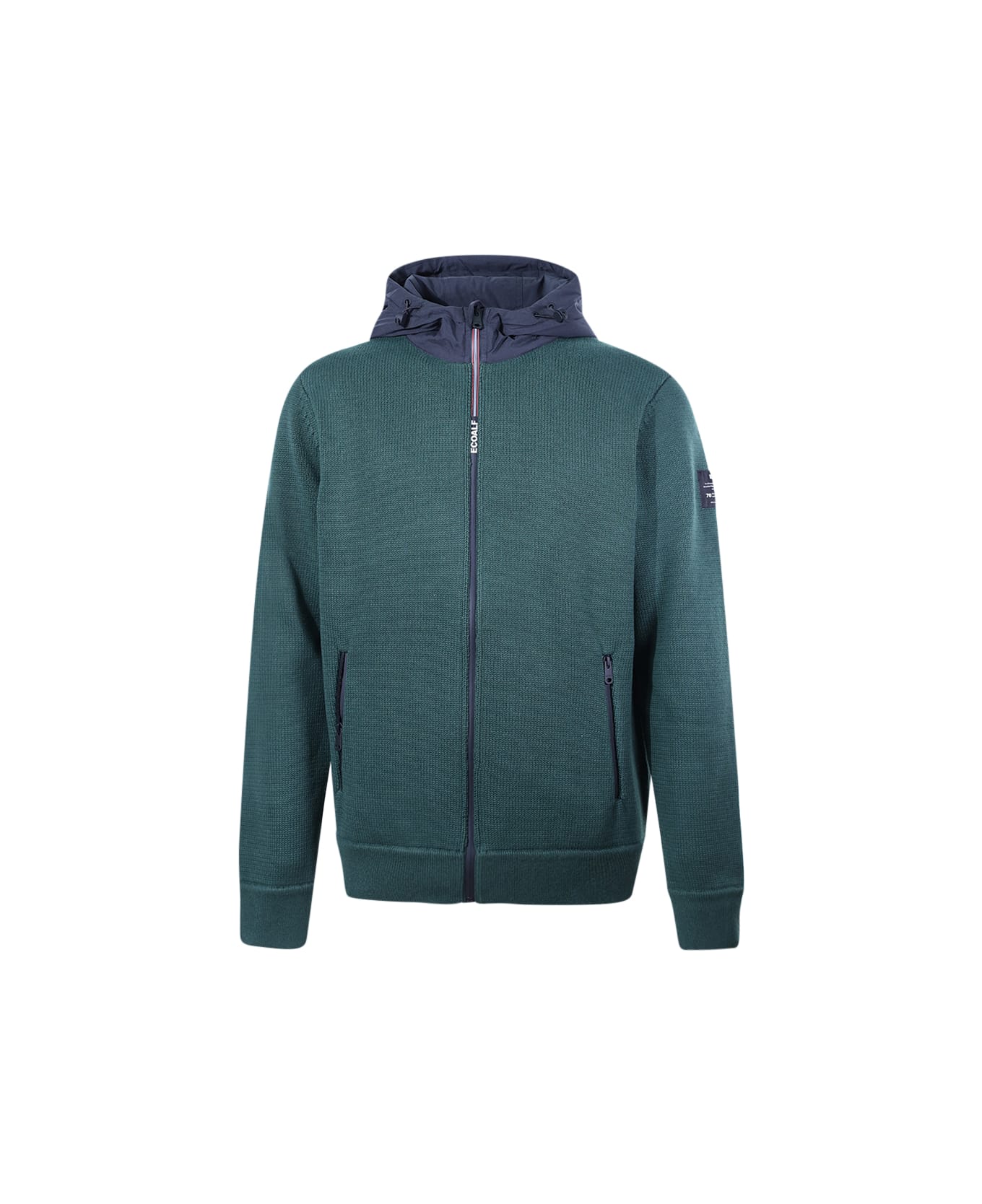 Zip closure, fixed hood with drawstring, side pockets with zip, logo patch on left sleeve. Green colour. Composition: 100% Polyester (Recycled).