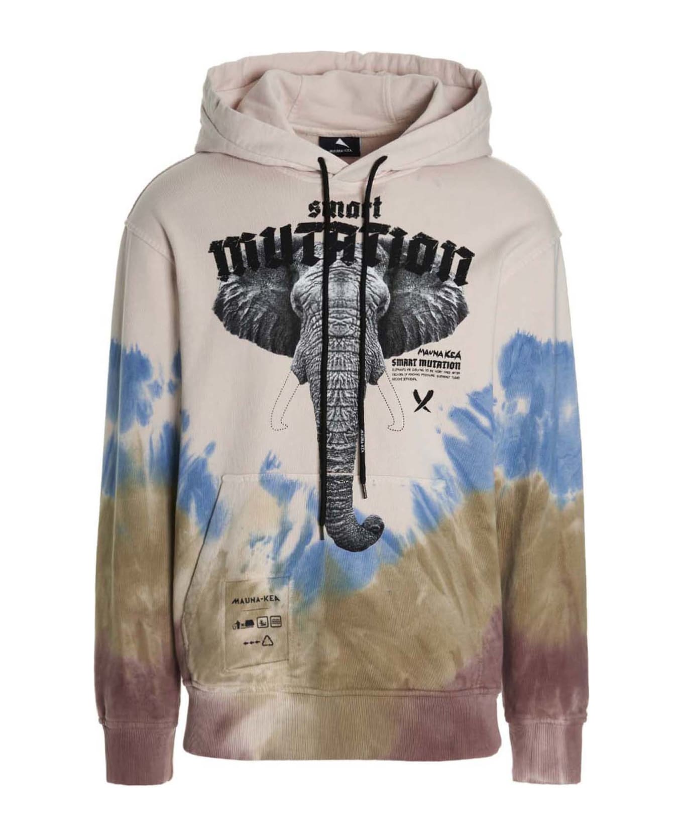 Tie & dye cotton hoodie with a front 'Elephant' print, long cuffed sleeves, and a kangaroo pocket with a logo print.