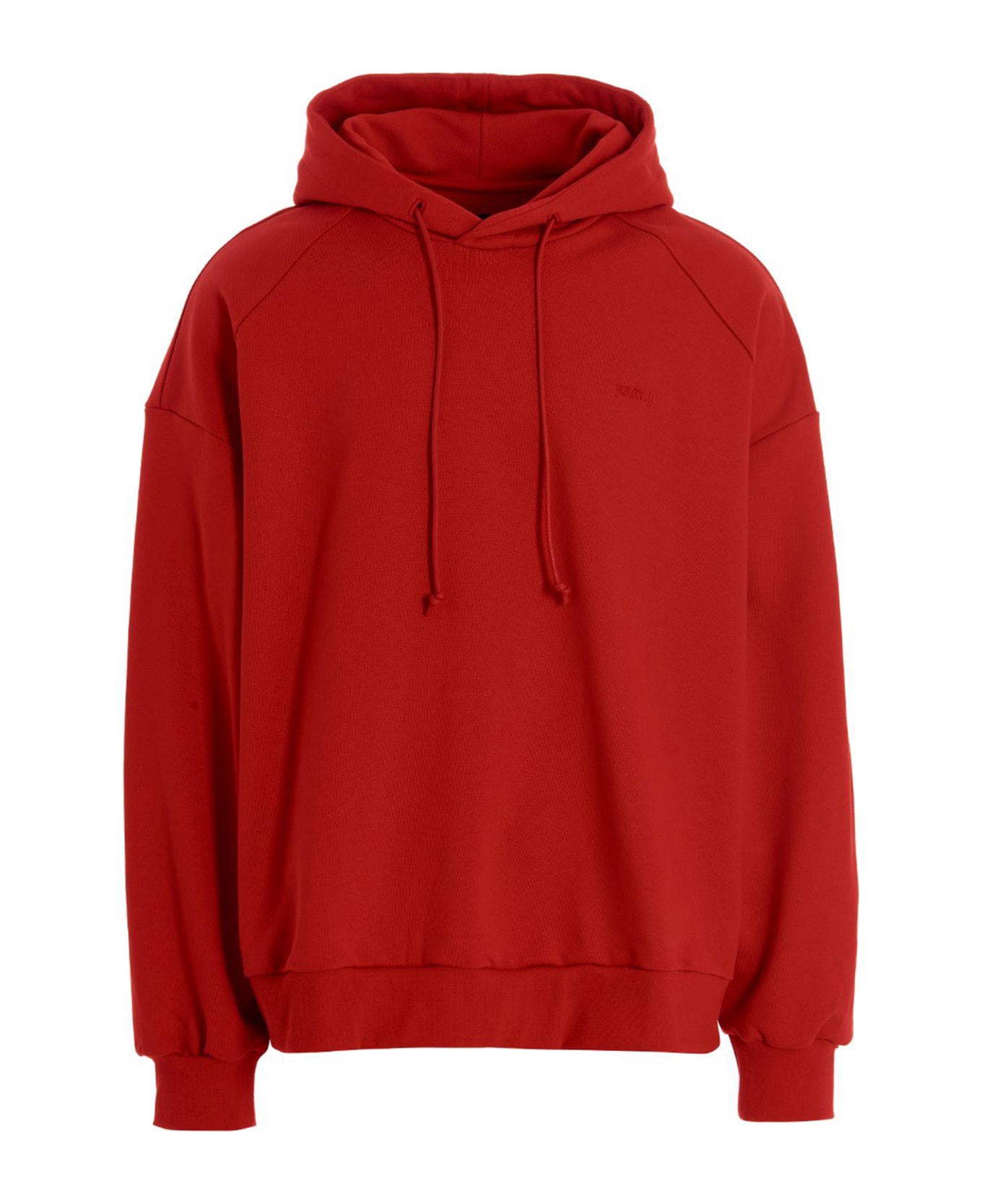 Cotton hoodie with print and embroidery at the back, long cuffed sleeves and a front logo embroidery.