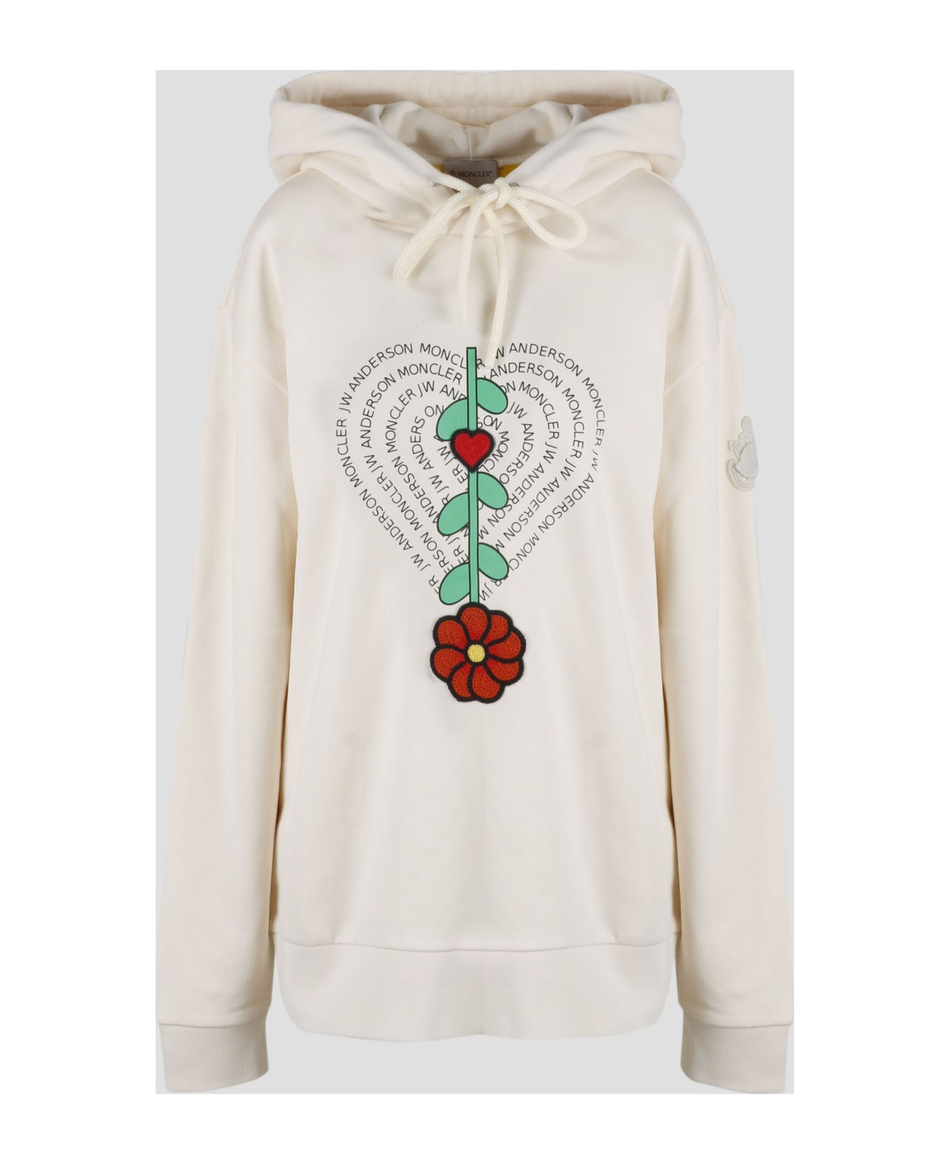 Moncler Genius hooded sweatshirt in cotton jersey with J. W. Anderson heart print and macramé embroidery. - SS23 - Relaxed fit - Drawstring hood - J. W. Anderson heart print on the front - Macramé embroidery flowers and hearts - Ribbed cuffs and bottom - Made in Turkey - 100% Cotton