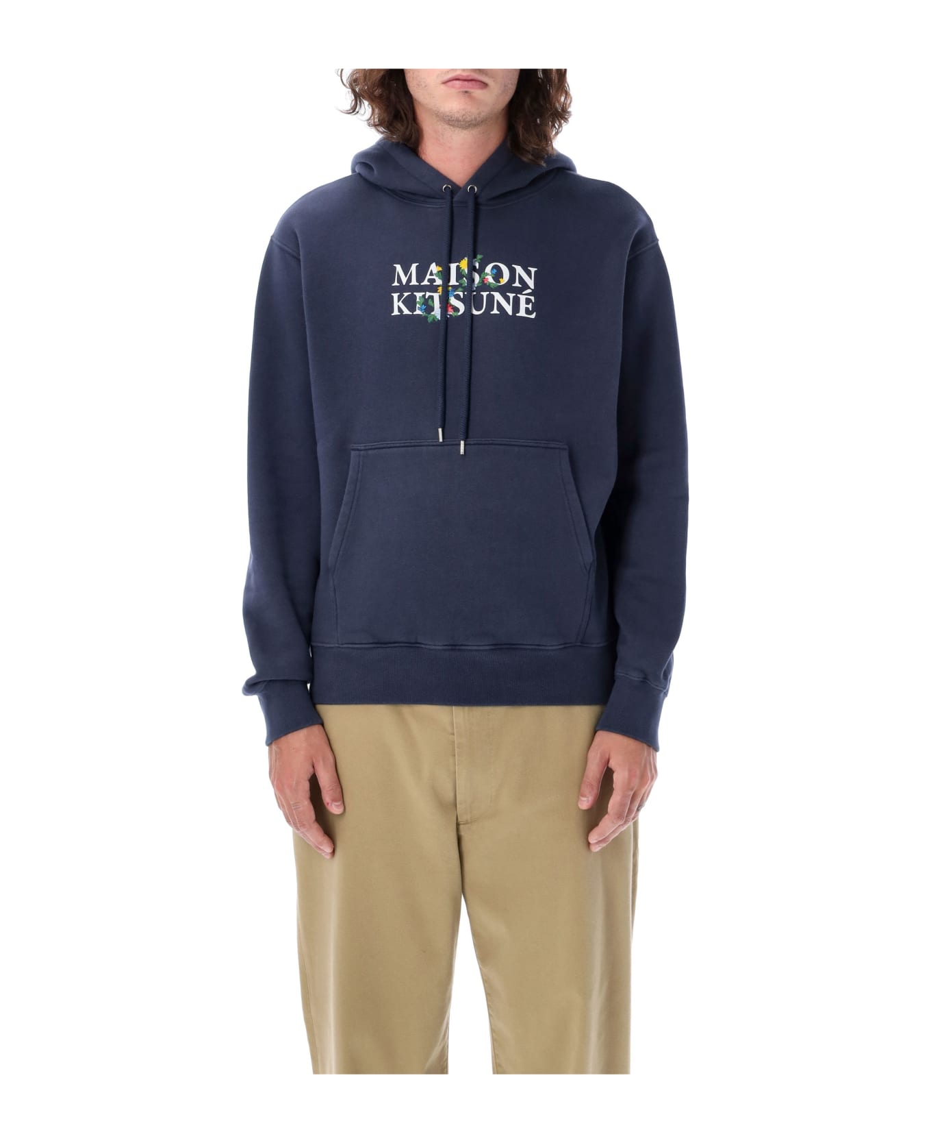 Flowers Comfort Hoodie By Maison Kitsuné. Featuring: Hood With Drawstring Long Sleeves Printed Logo At Chest Embroidered Flowers At Chest Kangaroo Pocket At Front Ribbed Cuffs And Hem Regular Fit Model Is 1,90 M Tall And He Is Wearing Size L