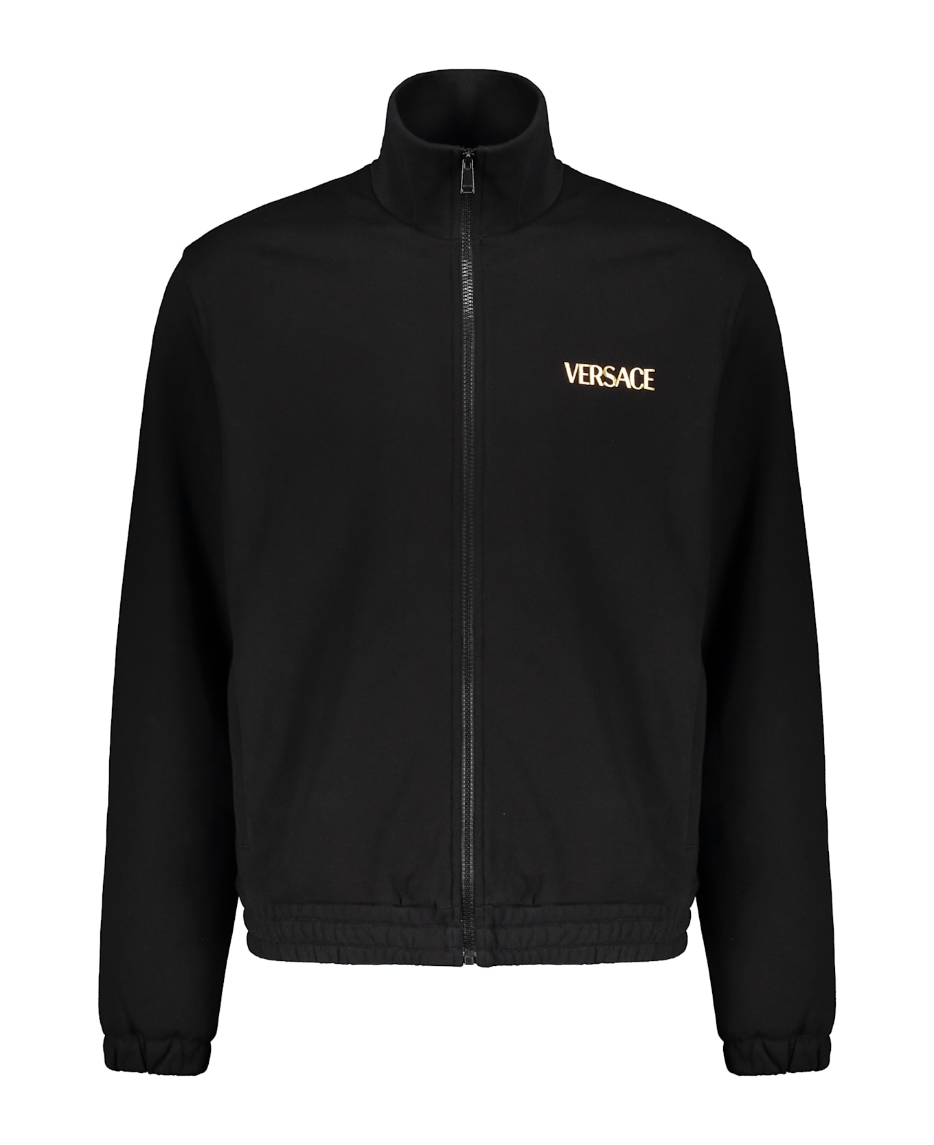 Front logo print back gold-tone metallic effect maxi logo print elasticated cuffs and hemline stand up collar two front pockets 100% cotton Composition: 100% % Cotton