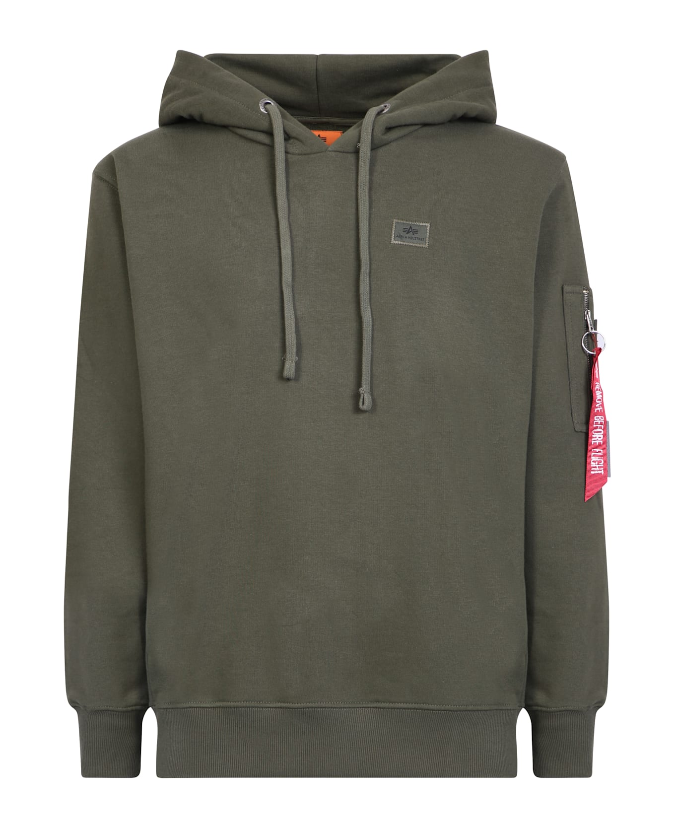 Drawstring hood. Long sleeves. Logo patch at the chest. 'Remove before flight' slogan tag at the sleeve. Sleeve pocket. Straight hem. Color: green