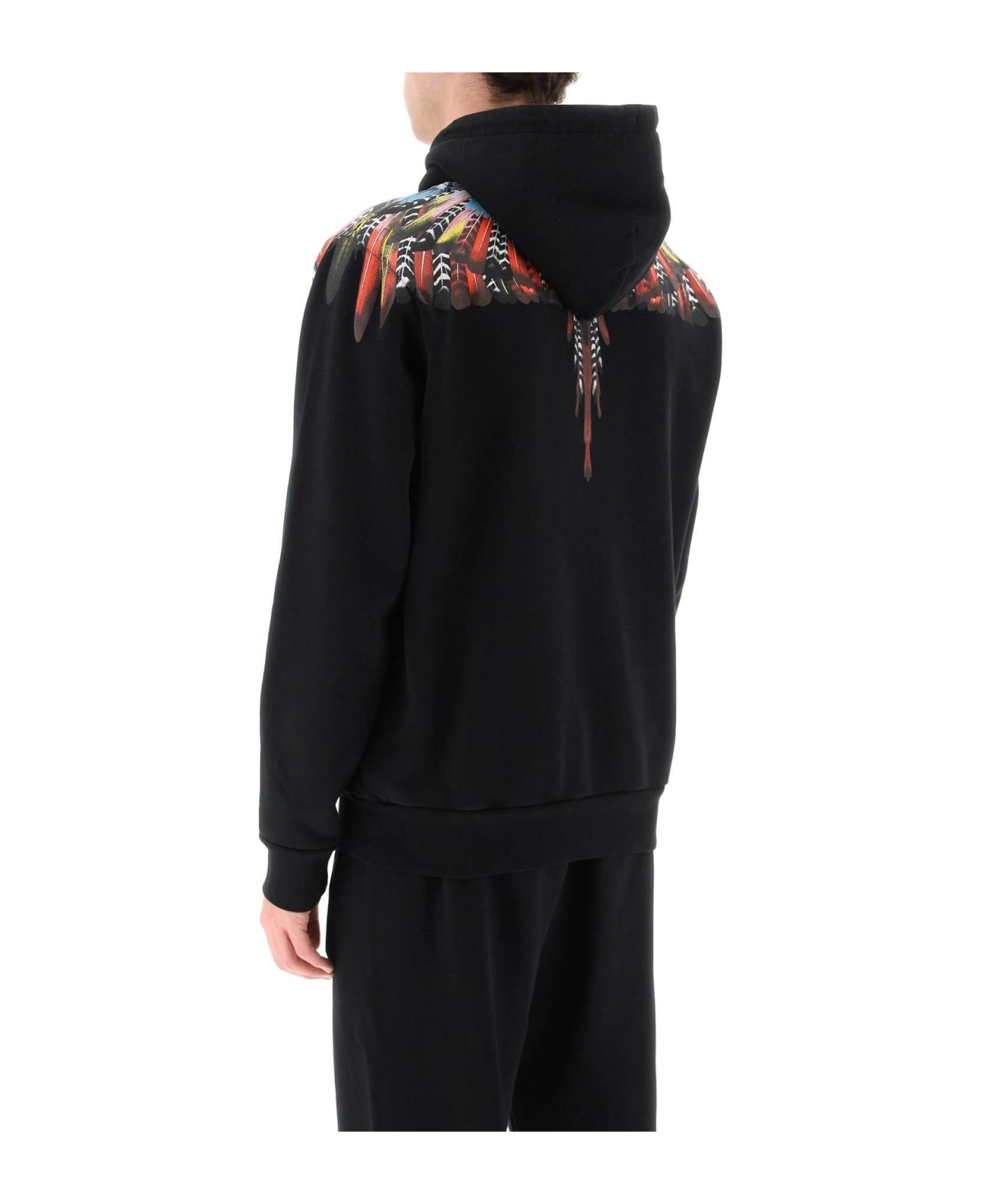 Marcelo Burlon sweatshirt in loop-back organic cotton jersey with Grizzly Wings print, featuring an adjustable hood and a kangaroo pocket. Ribbed cuffs and hem, regular fit. The model is 187 cm tall and wears a size L.