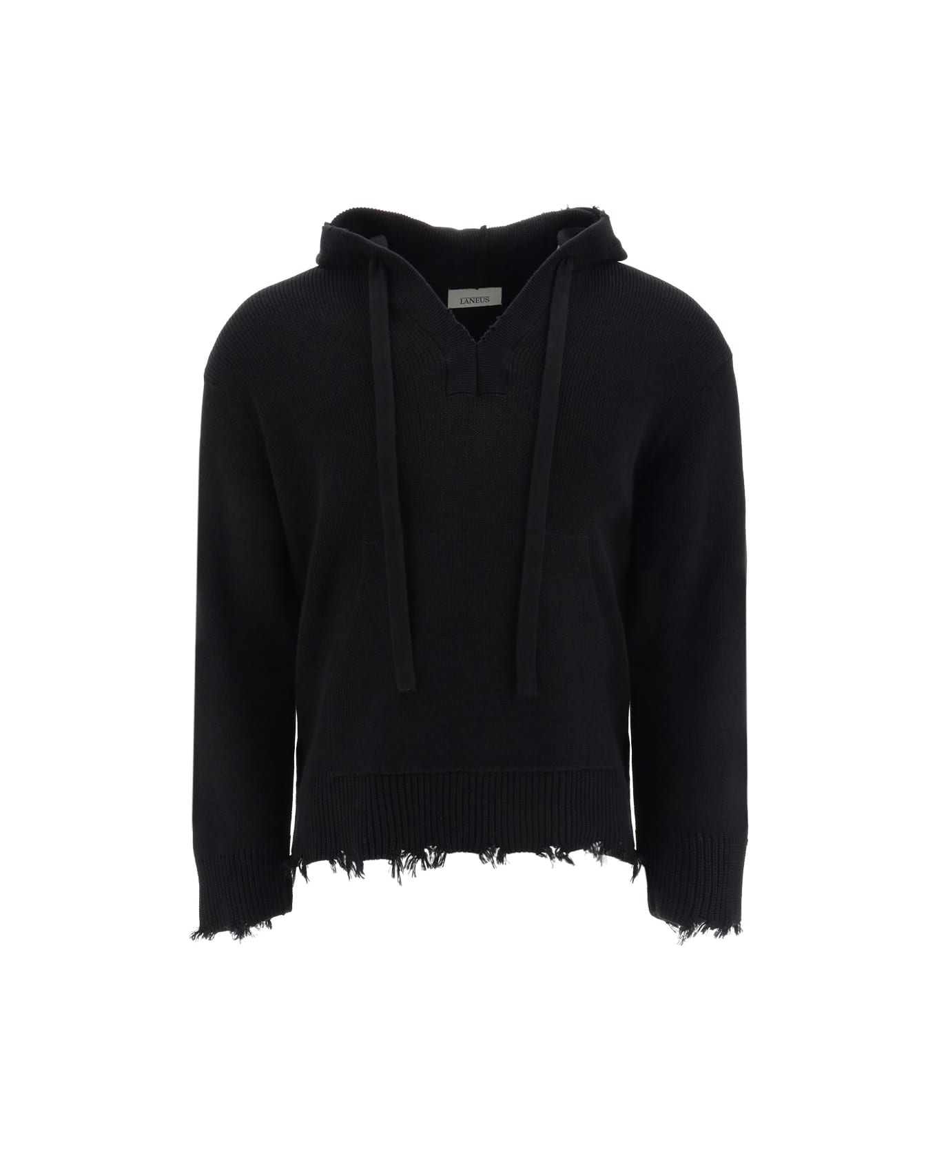 Cotton hooded sweater by laneus, adjustable drawstring hood, frayed ribbed cuffs, front kangaroo pocket, frayed hem, regular fit. Composition: 100% % Cotton