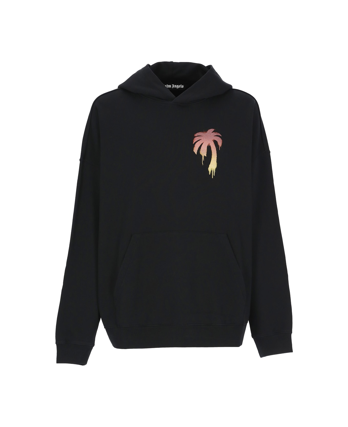 - Black Palm Angels cotton sweatshirt for man - Hood - Long sleeves - Front contrasting color Palma print - Kangaroo pocket - Rear contrasting colour Palma print Composition: 100% Cotton Rib:, 95% Cotton, 5% Elastane