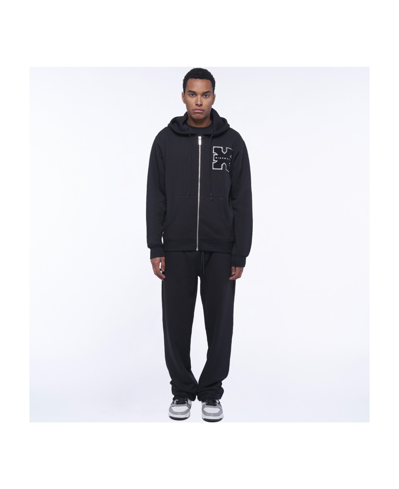 Hooded sweatshirt with front zip closure. Richmond X logo detail in contrast.