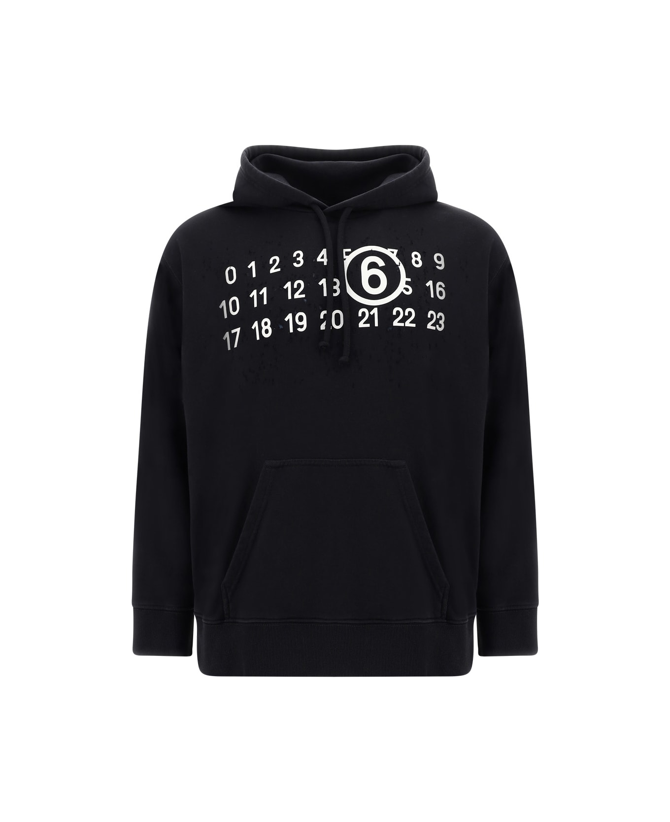 Cotton hoodie by mm6, hood with adjustable drawstring, ribbed cuffs, ribbed hem, front kangaroo pocket, iconic brand monogram printed in contrast on front, regular fit. Composition: 65% % Cotton, 35% % Polyester