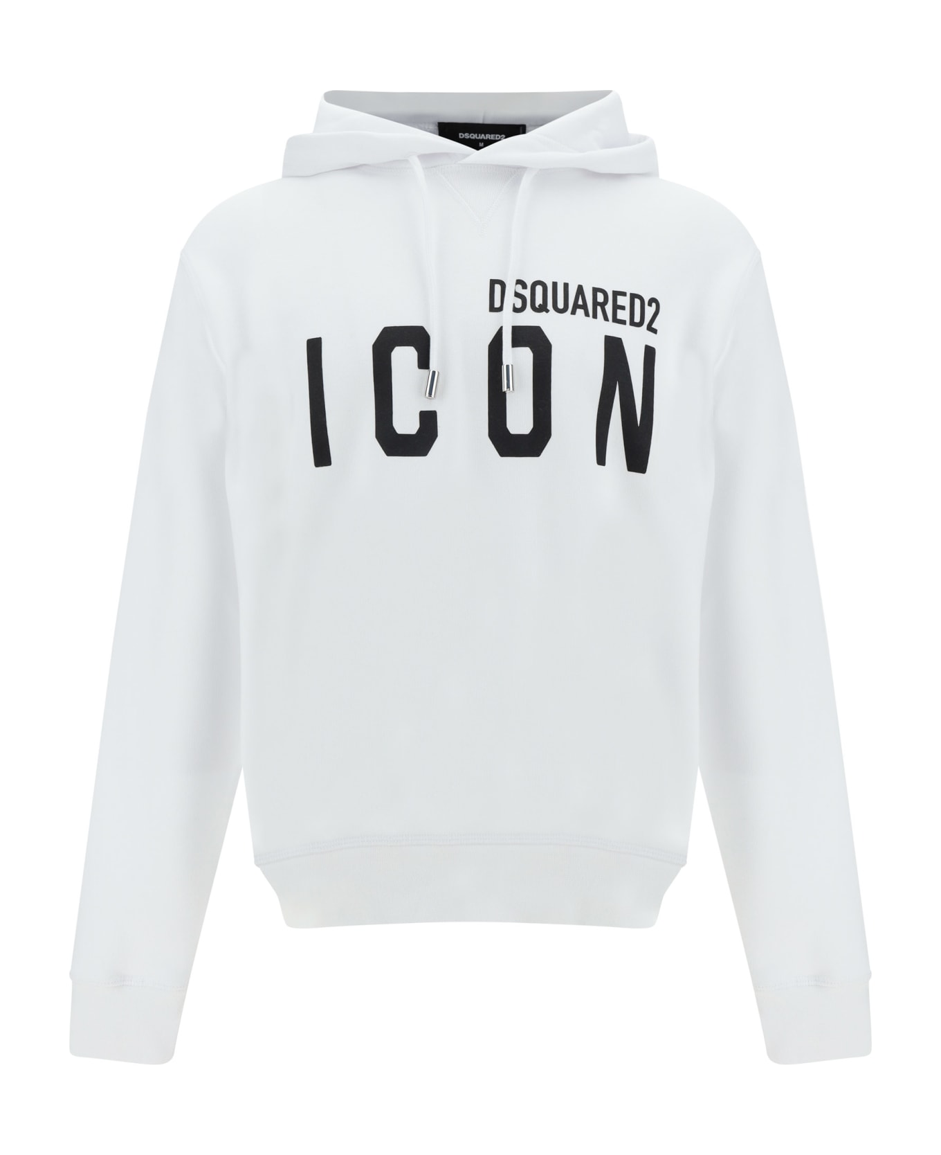 Cotton hoodie by dsquared2, drawstring hood, ribbed cuffs, ribbed hem, iconic brand monogram printed in contrast on front.