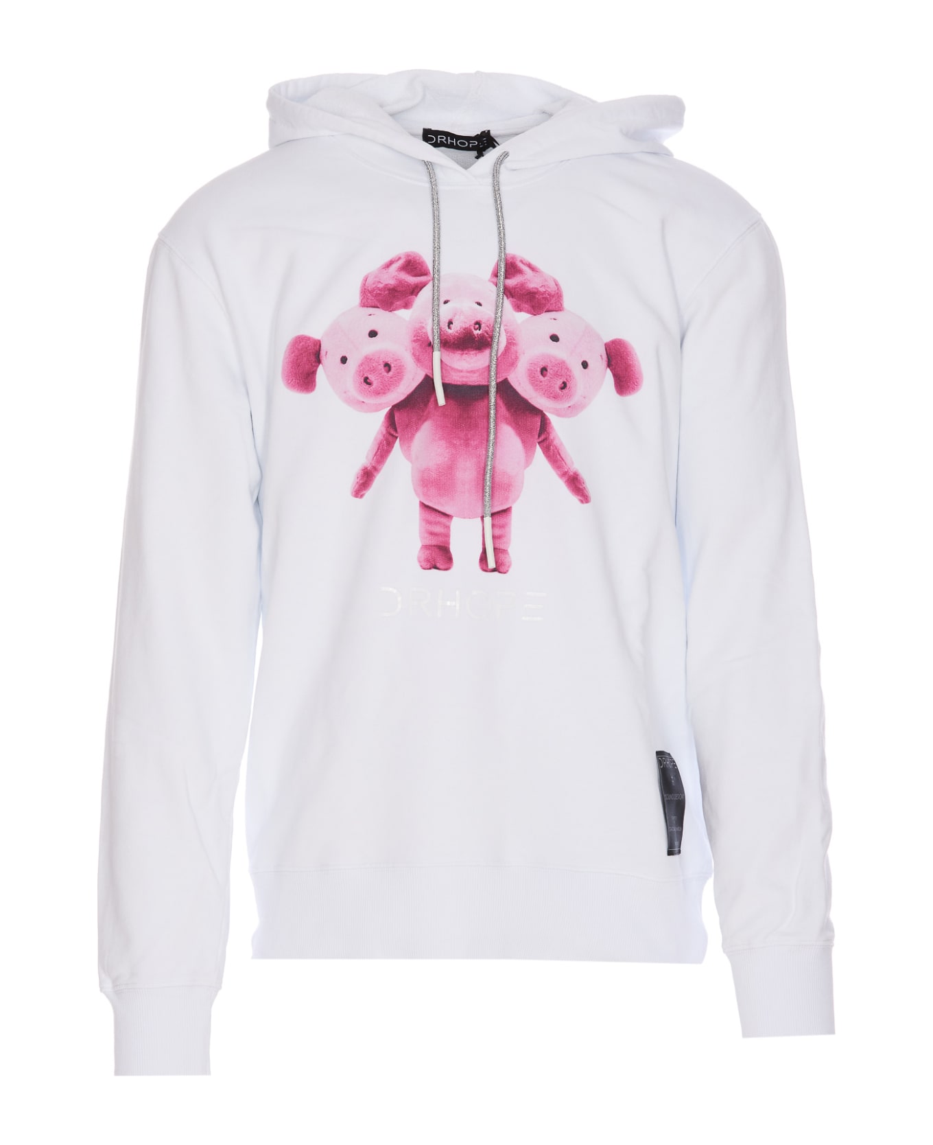 Drhope white hoodie, hood with coulisse, frontal print and tone on tone logo, patch detail, elasticized cuffs Composition: 100% Cotton