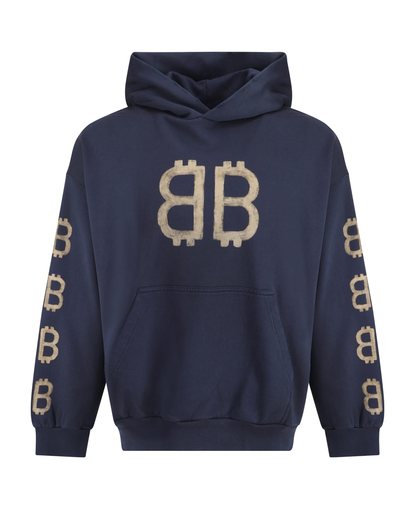 Cotton hoodie by balenciaga, features drawstring hood, ribbed cuffs, ribbed hem, front kangaroo pocket, iconic brand logo contrast print on front back and sleeves, regular fit, vintage worn effect design. Composition: 100% % Cotton
