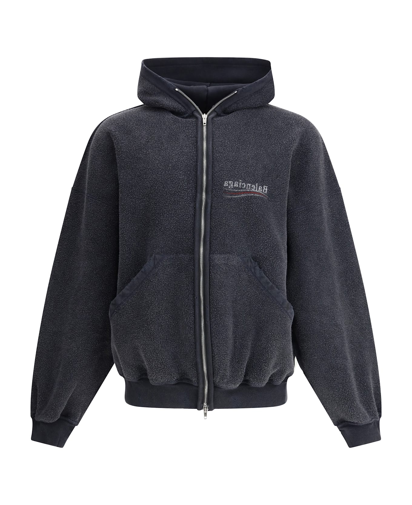 Balenciaga's inside-out cotton hoodie reinterprets streetwear with a bold and distinctive design. featuring a double-slider front zipper closure, it offers a unique interpretation of the iconic balenciaga monogram on both the front and back panel. ribbed cuffs and hem ensure a comfortable and defined fit, while two patch welt pockets on the front add functionality. with its inverted sweatshirt-effect design, this sweatshirt has a contemporary and innovative spirit.