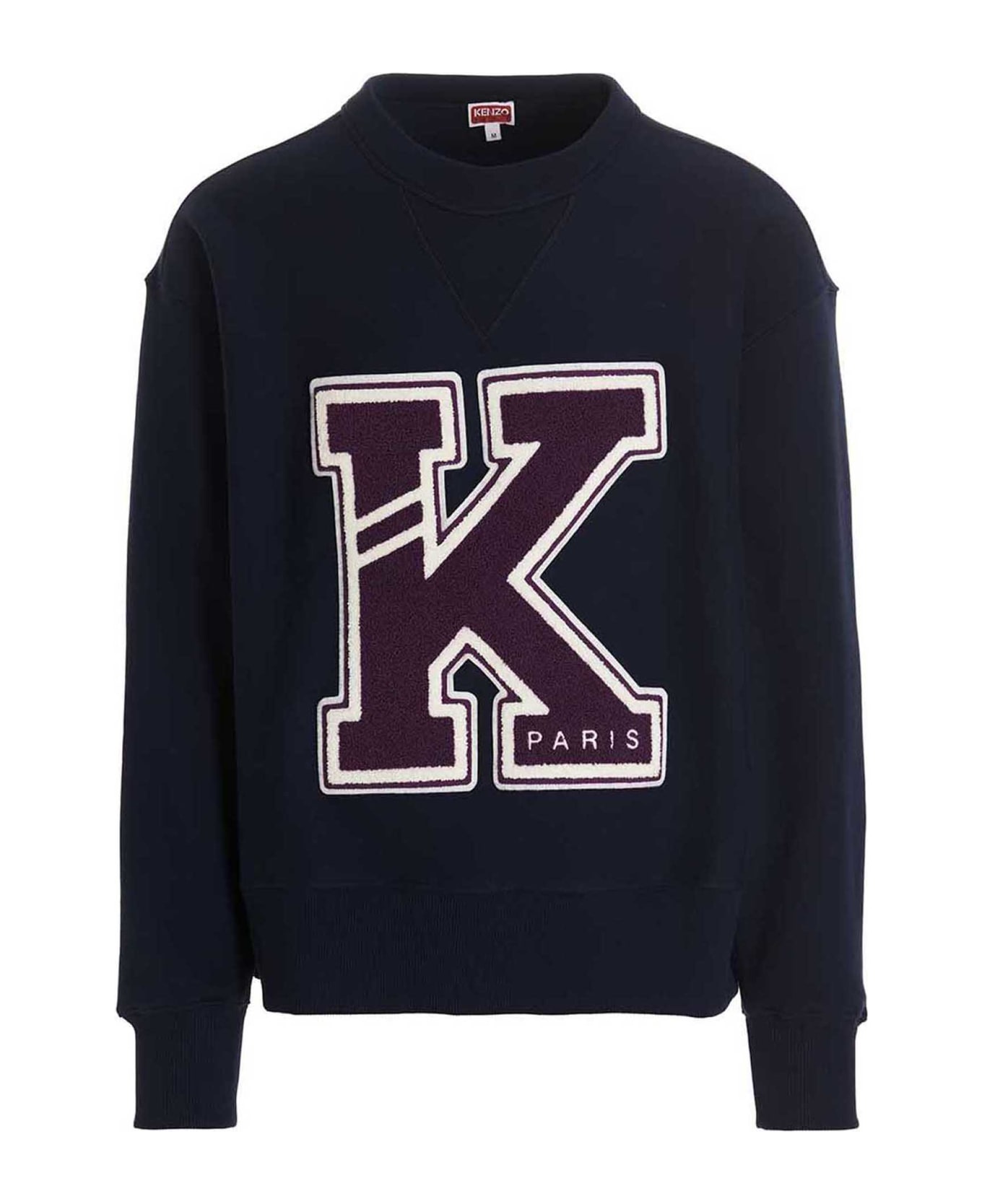 'Kenzo College cotton sweatshirt with patches at the front and back, a crew neck, and long cuffed sleeves.