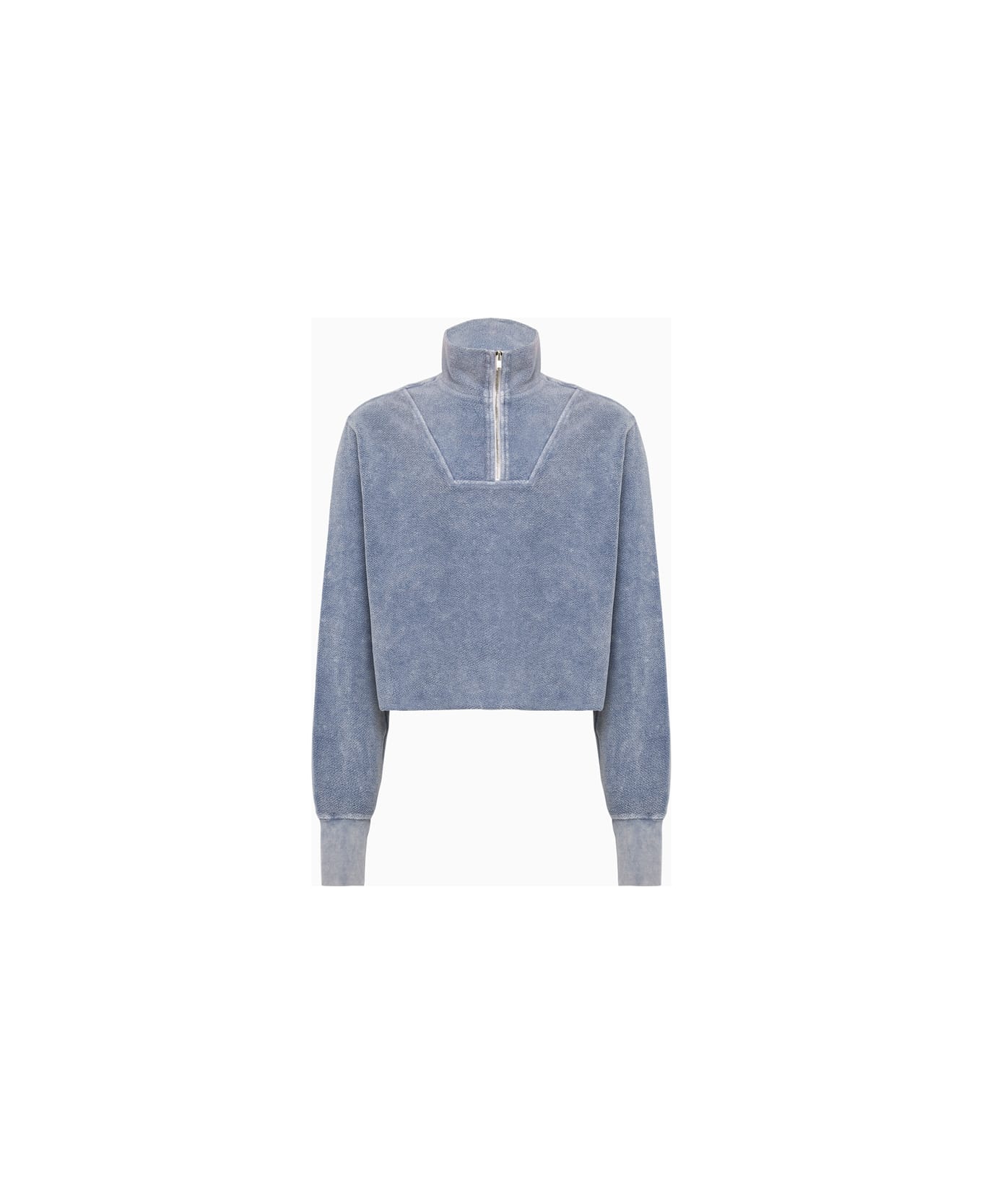 solid color sweatshirt in soft cotton terry. high funnel collar. front half-zip fastening. extra-long sleeves. ribbed cuffs and bottom. cotton fleece lining. loose fit. composition: 100% cotton.