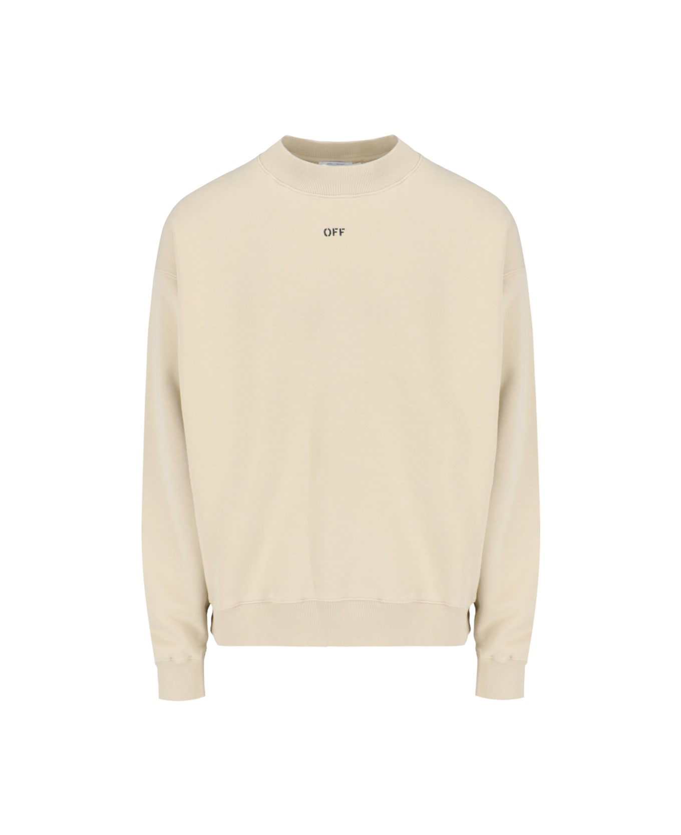 Off-White logo crewneck sweatshirt in beige cotton with ribbed knit, black logo print on the front, straight hem.