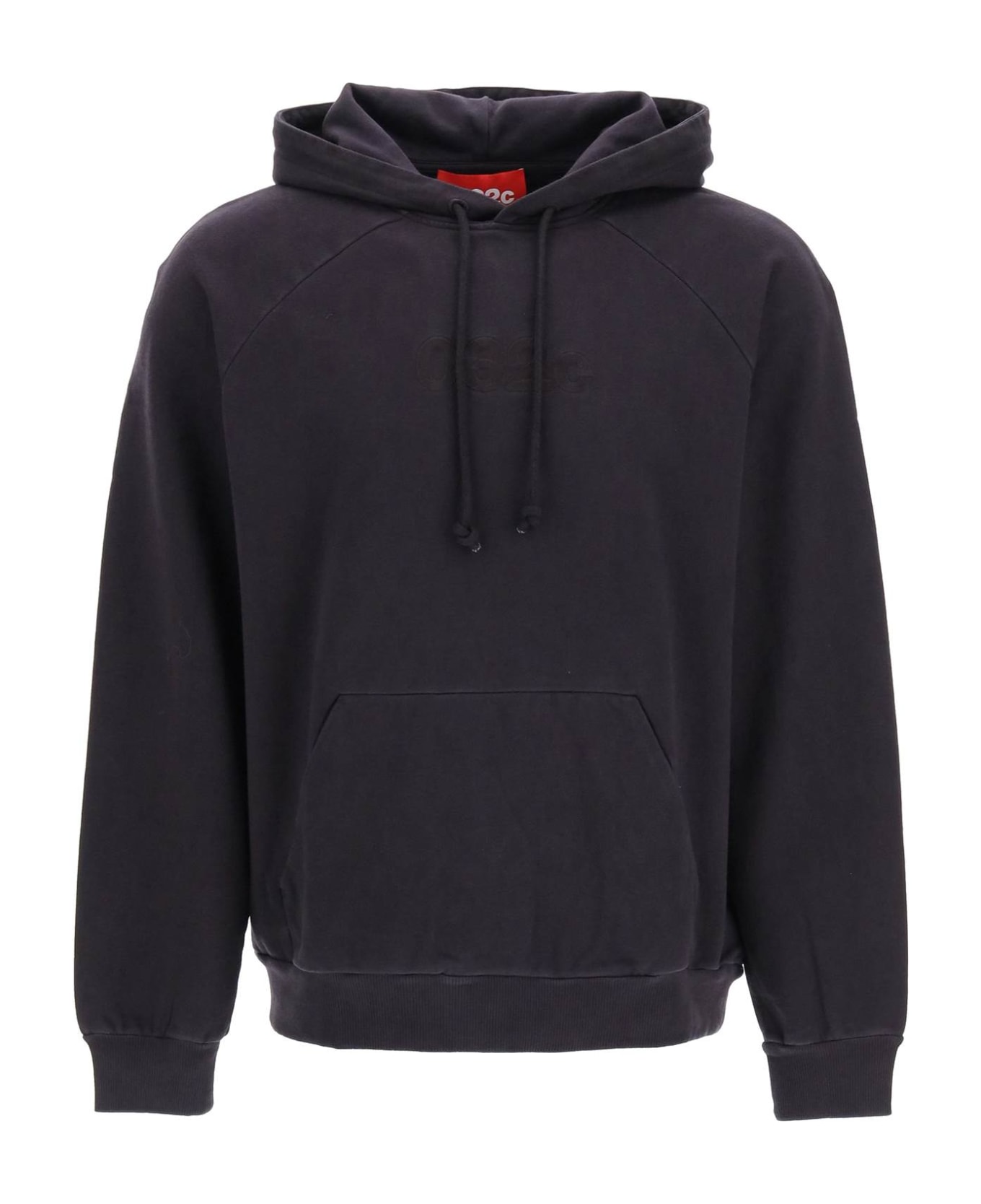 Brushed-back organic cotton sweatshirt with front 032c tonal logo embroidery. It features drawstring hood, raglan sleeves and front kangaroo pocket. Finished with ribbed hem and cuffs. Regular fit. The model is 187 cm tall and wears a size L.