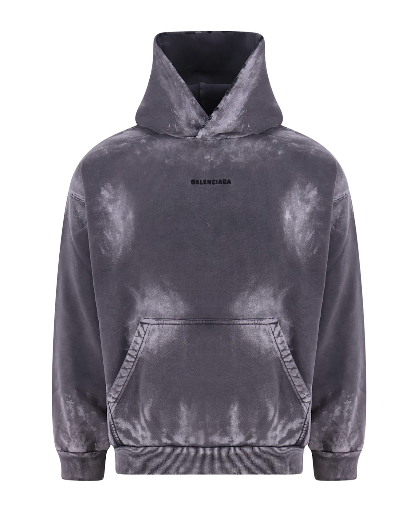 Balenciaga logo hoodie in grey cotton with distressed wash, all-over distressed details, black logo embroidery on the chest, maxi front pocket, maxi black logo embroidery on the back, ribbed trims, straight hem. Composition: 100% Cotton