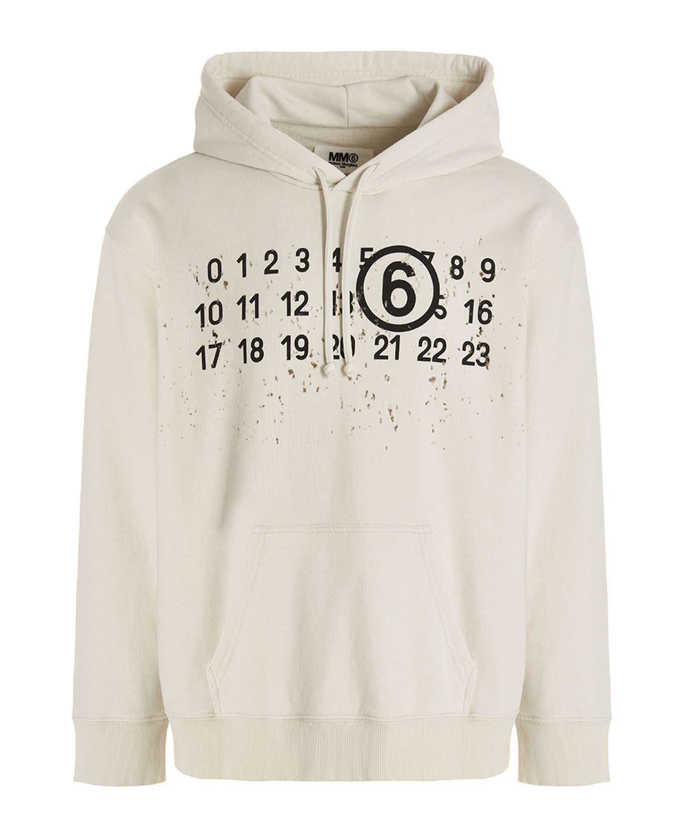 Cotton blend hoodie with front logo print, used-effect details, kangaroo pocket, and long cuffed sleeves. Composition: 65% cotton 35% polyester