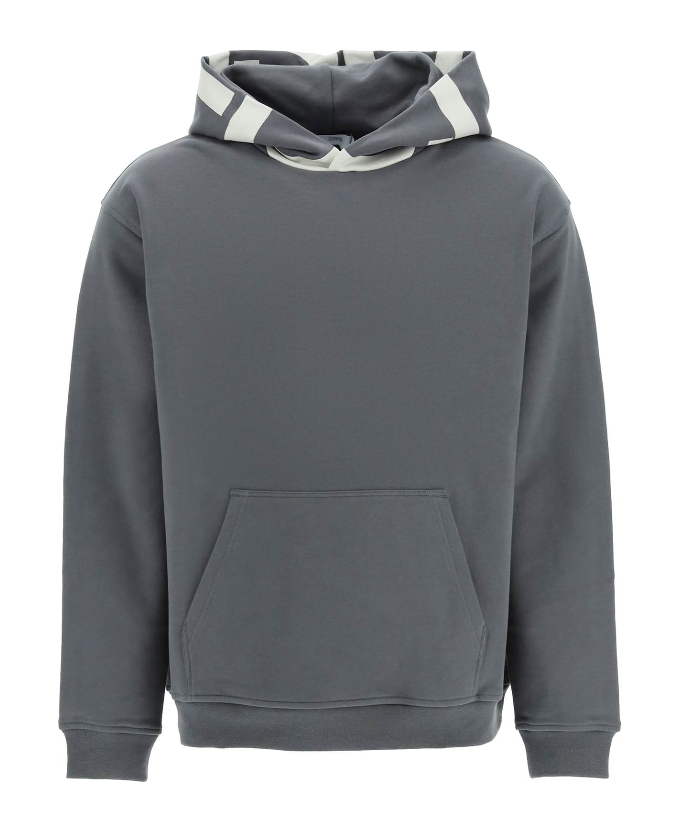 Relaxed-fit sweatshirt by Closed made of organic cotton jersey, featuring a maxi logo print on the hood, a kangaroo pocket, and rib-knit cuffs and hem. The model is 187 cm tall and wears a size L.