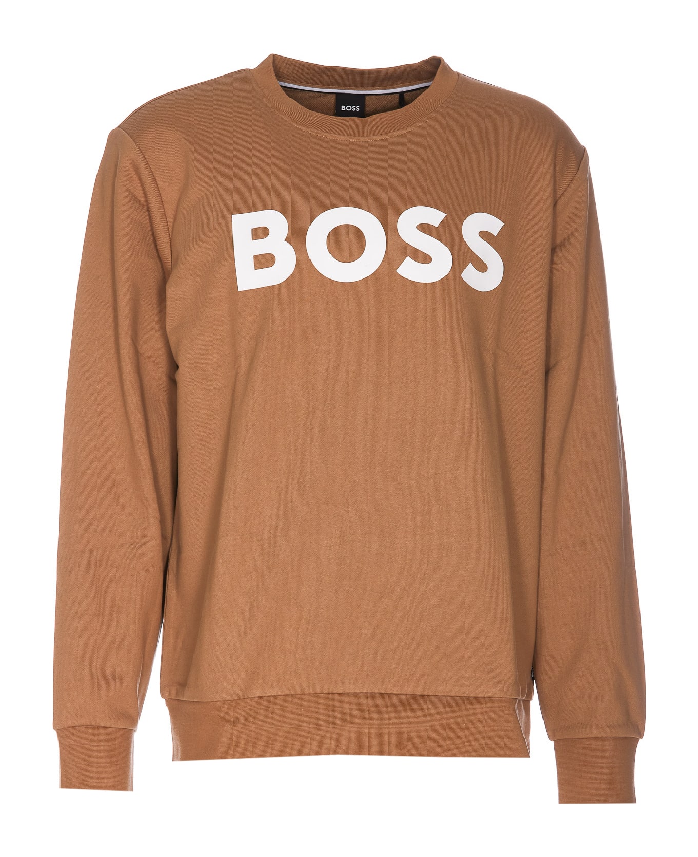Hugo Boss medium beige sweatshirt, frontal print logo, long sleeves, elasticized cuffs