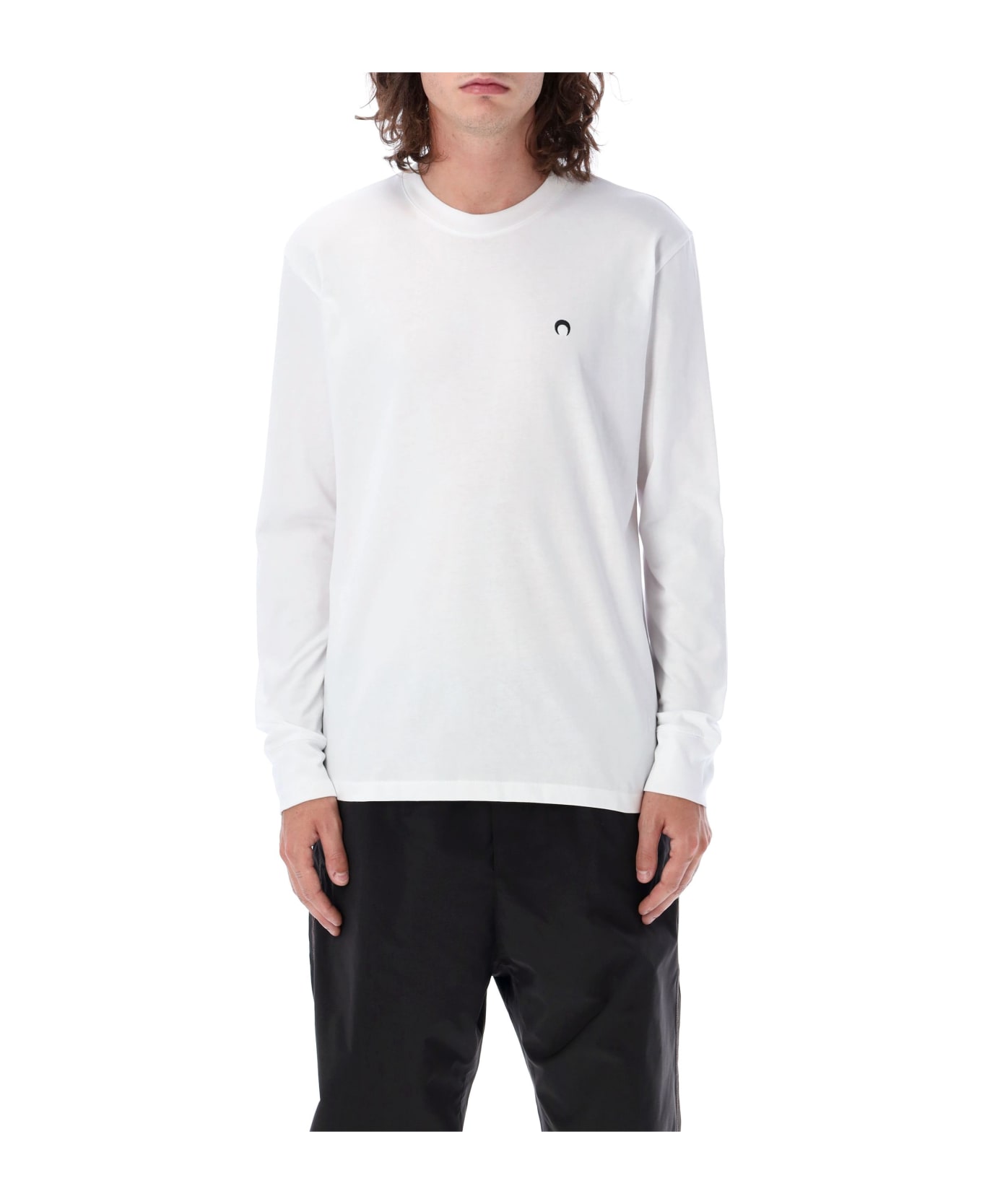 Long-sleeved T-shirt Small Moon By Marine Serre. Featuring: Crewneck Long Sleeves Contrasting Small Moon Embroidery At Chest Plian Back Straight Hem Model Is 1,90 M Tall And He Is Wearing Size L