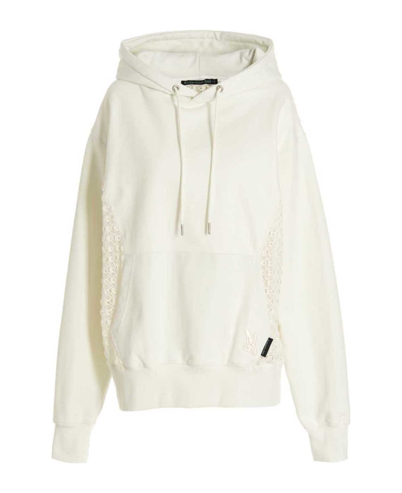 Mesh Panel Contrast' cotton hoodie with sheer lace inserts, kangaroo pocket, and long cuffed sleeves.