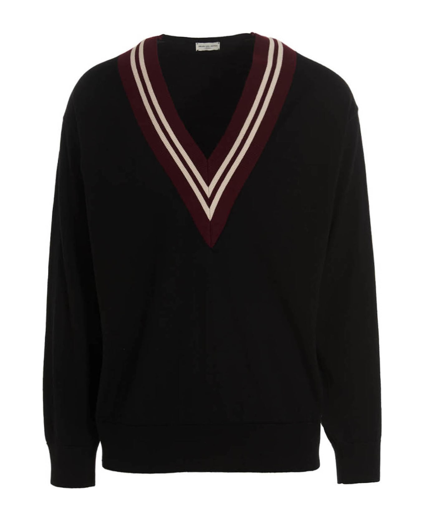 Miliaan' wool sweater with contrast maxi V-neck, long cuffed sleeves.